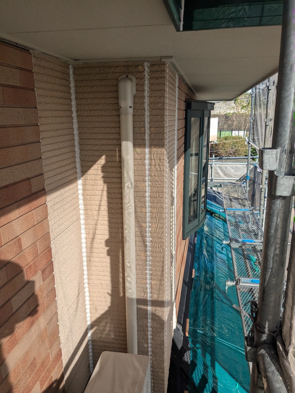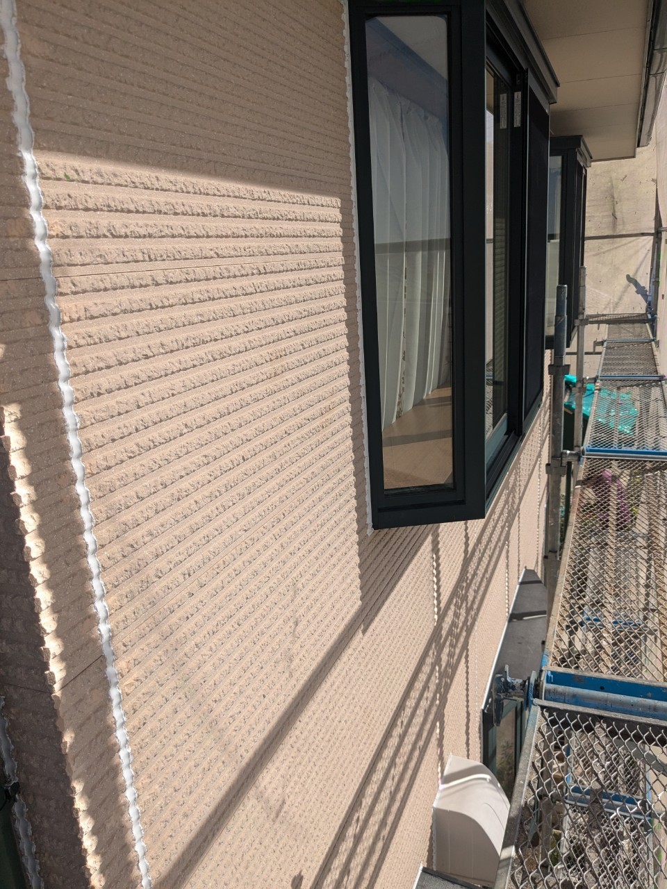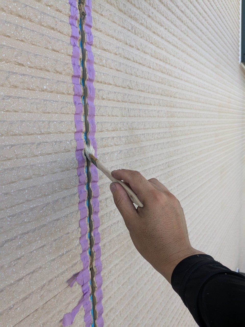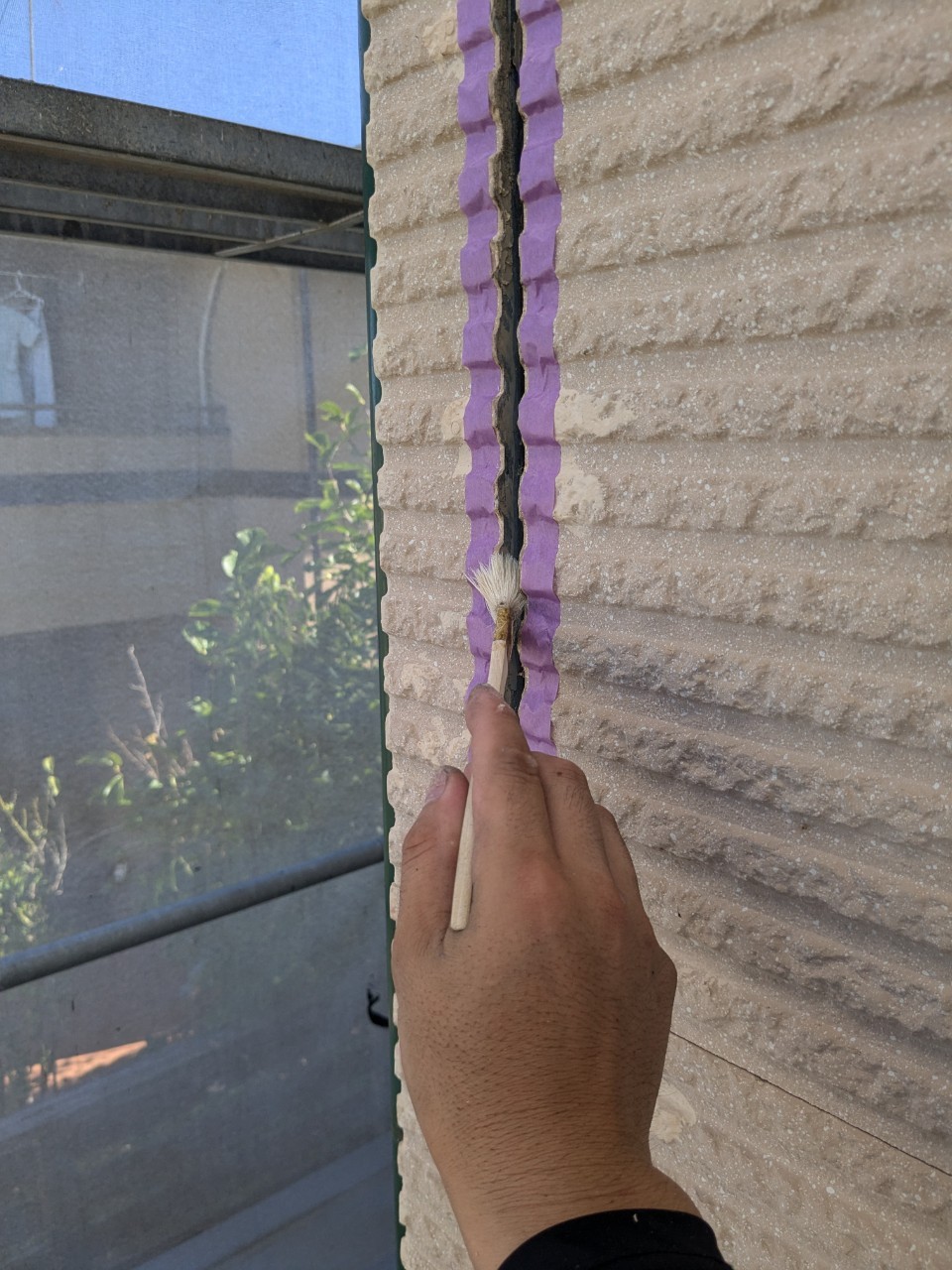 目地に空気を咬ませてしまうと、早期でのシーリング断裂や膨れなどの不具合が起こる為、慎重に作業を行っていきます。