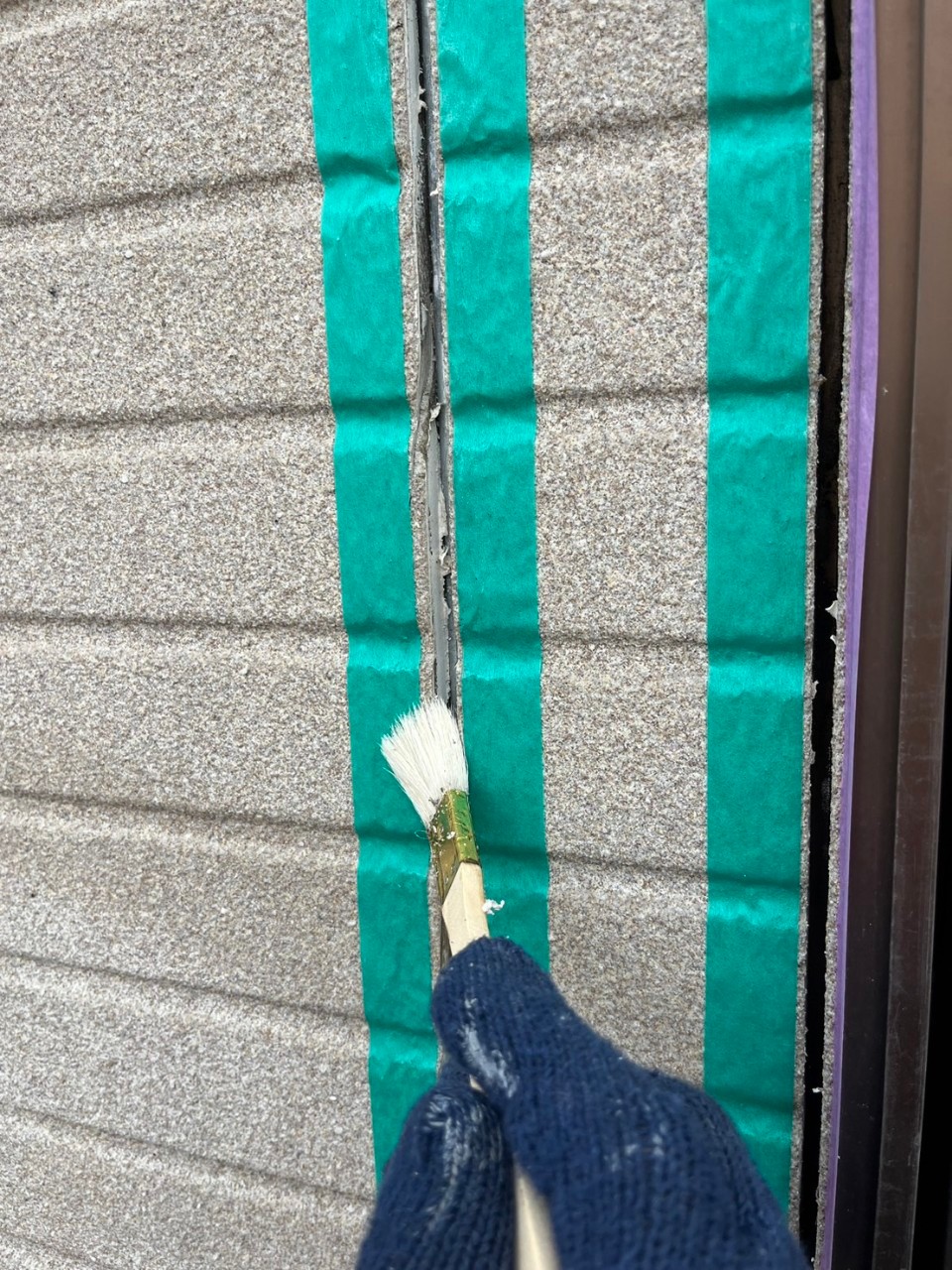 まずは打ち替えの前に、目地や窓サッシ目地にプライマーを塗布していきます。