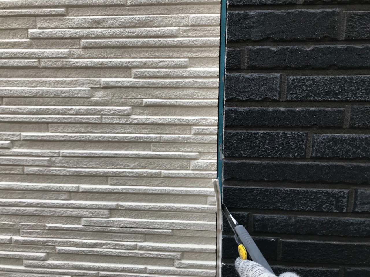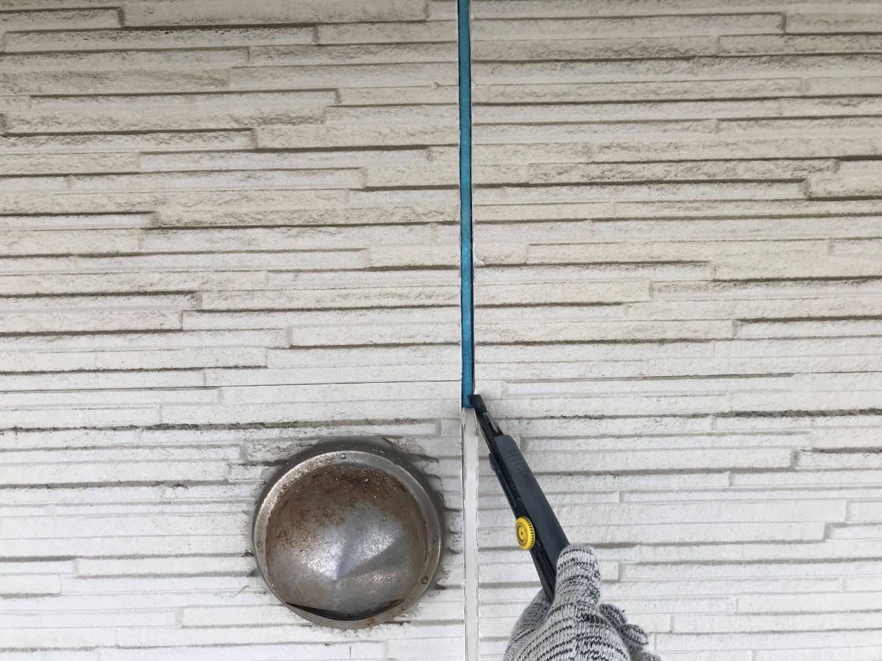 カッターや工具を使用して外壁目地のシーリング撤去を行っていきます。