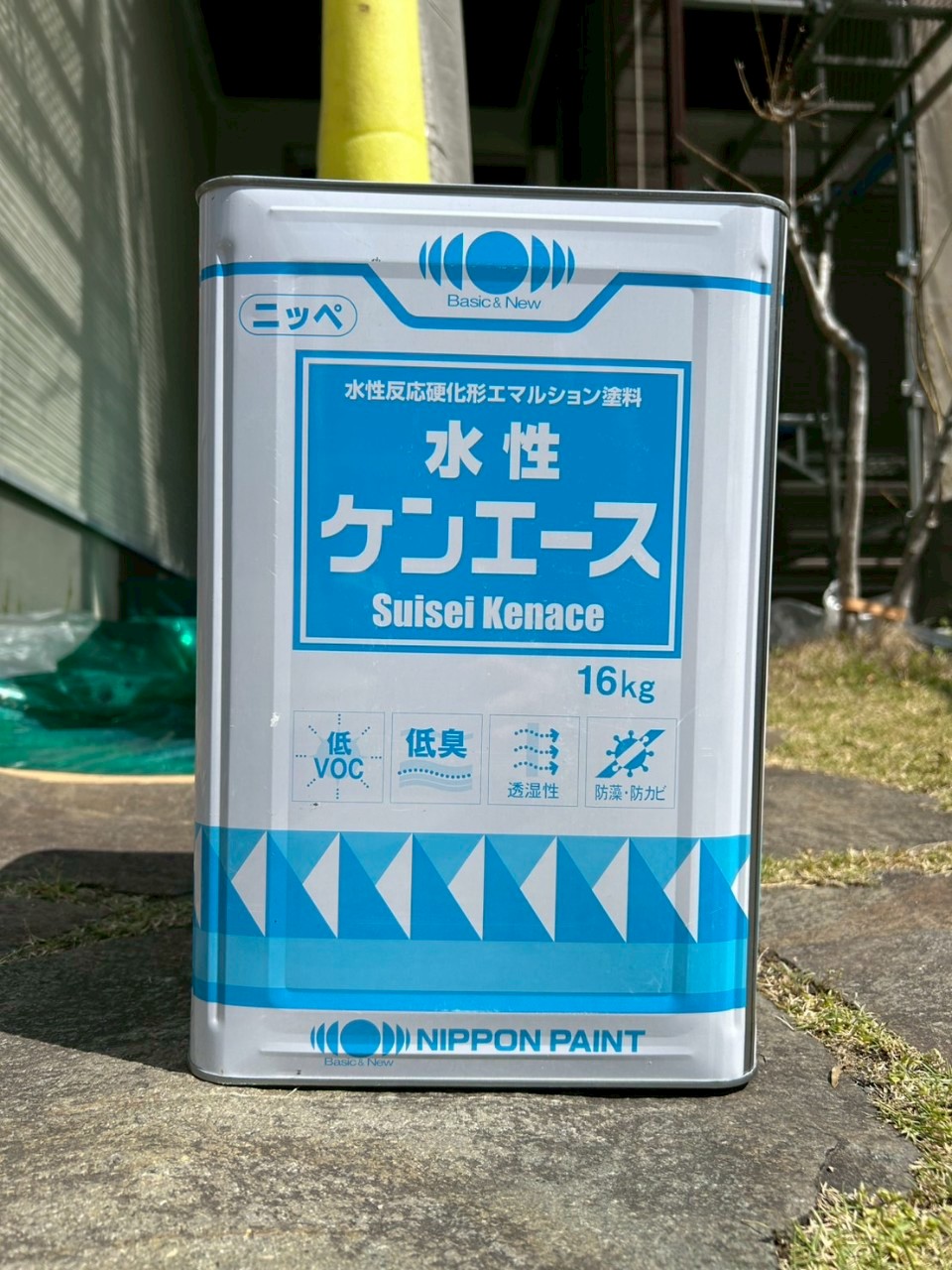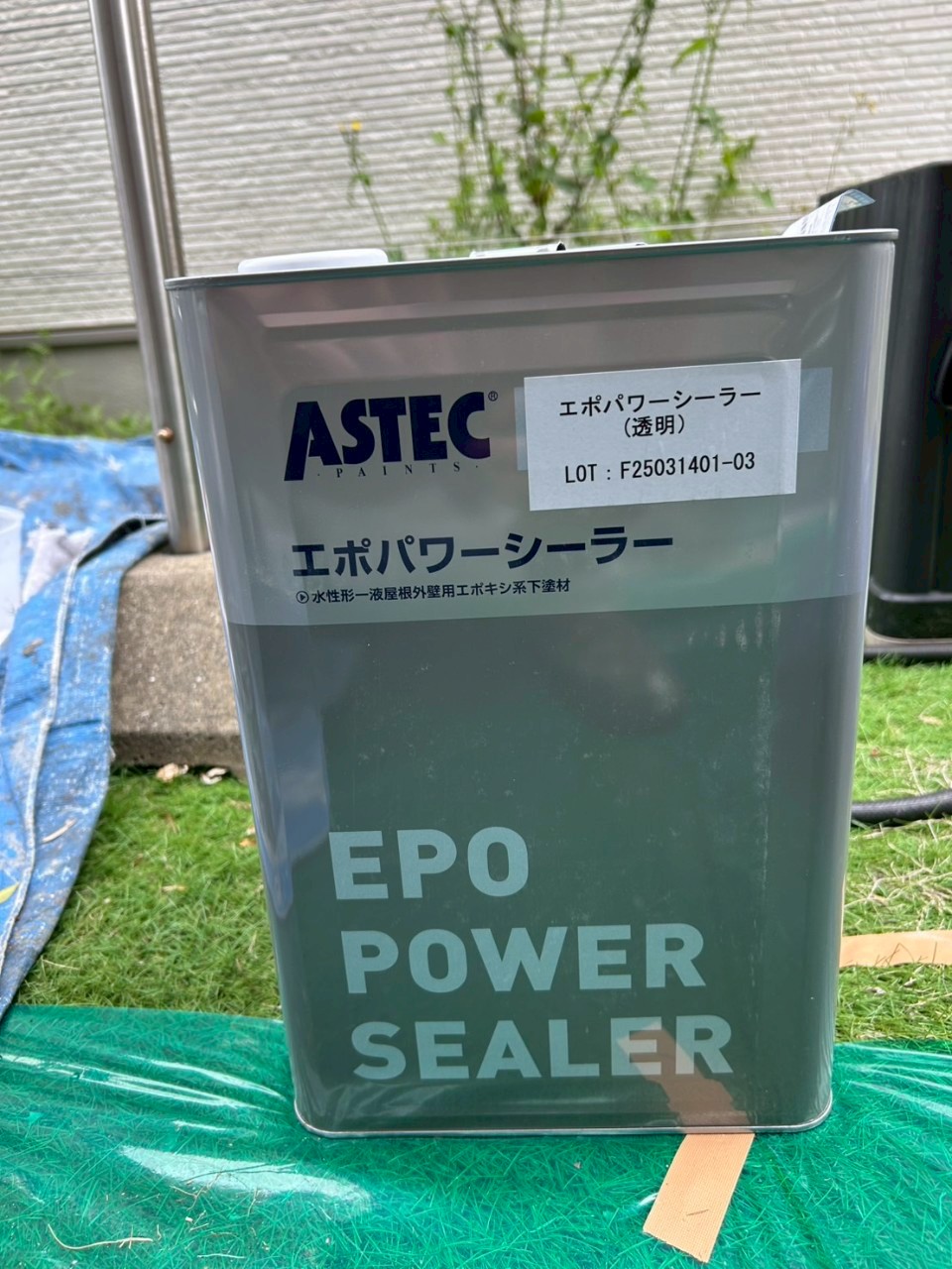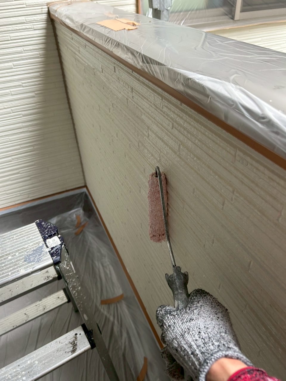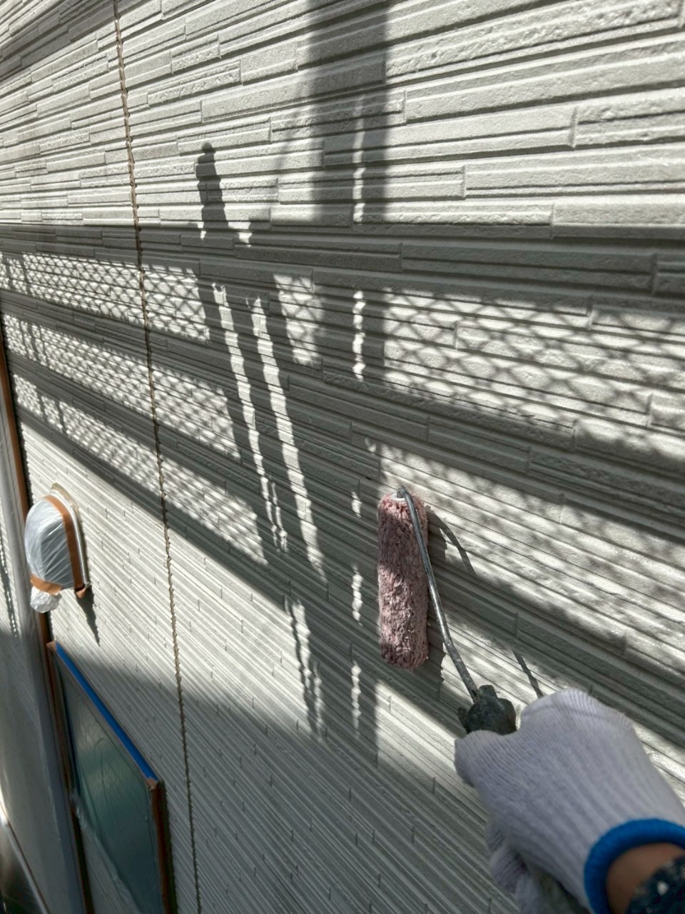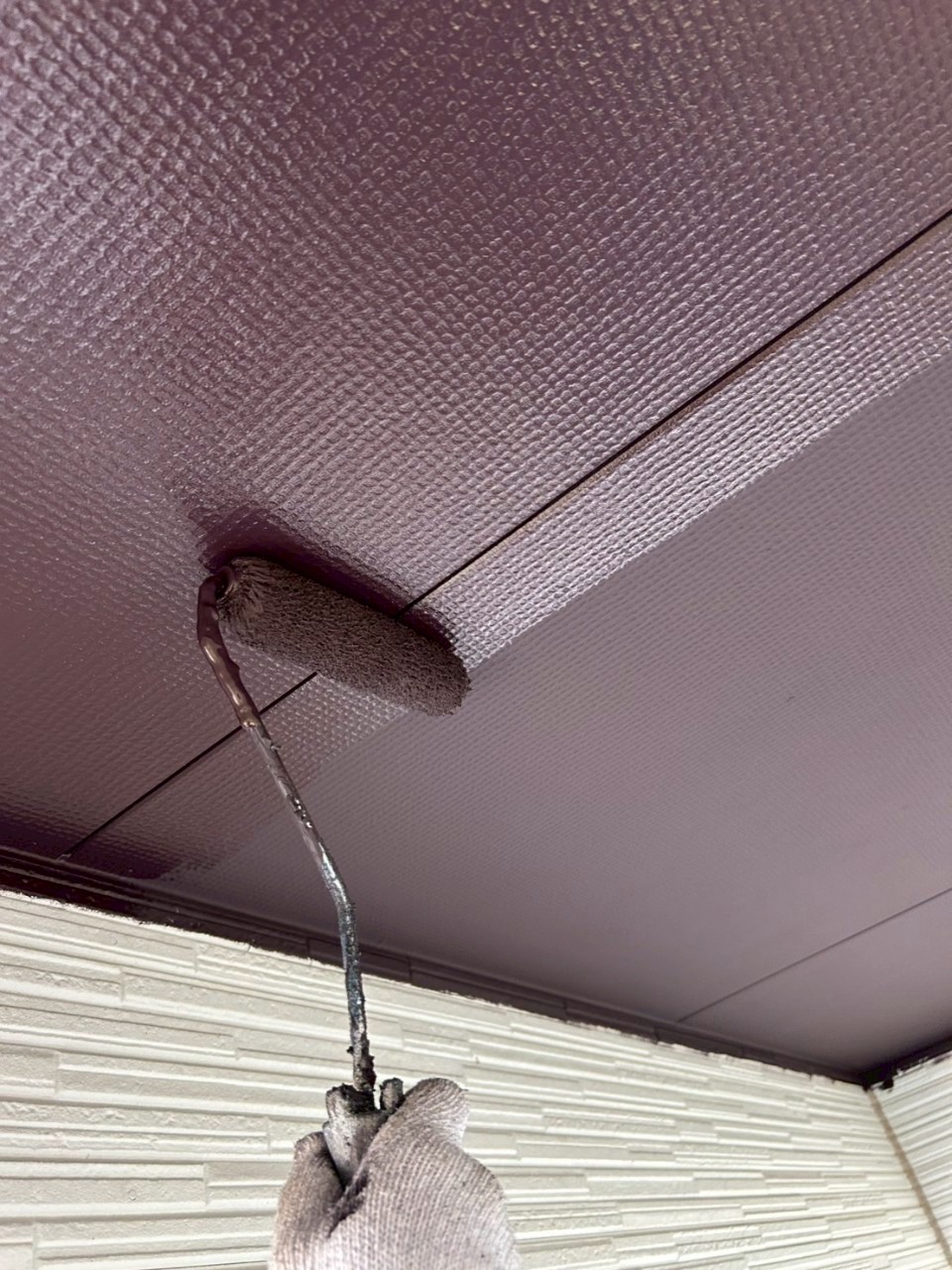 本日は、外壁の下塗り、軒天井塗装の様子をお伝えいたします。