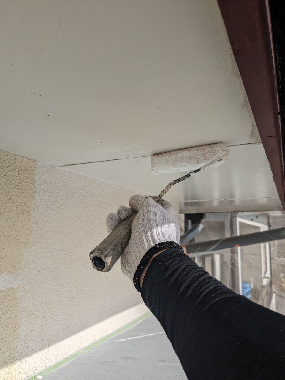 こちらを使用して、軒天井や外壁にしっかりと塗布を行っていきます。