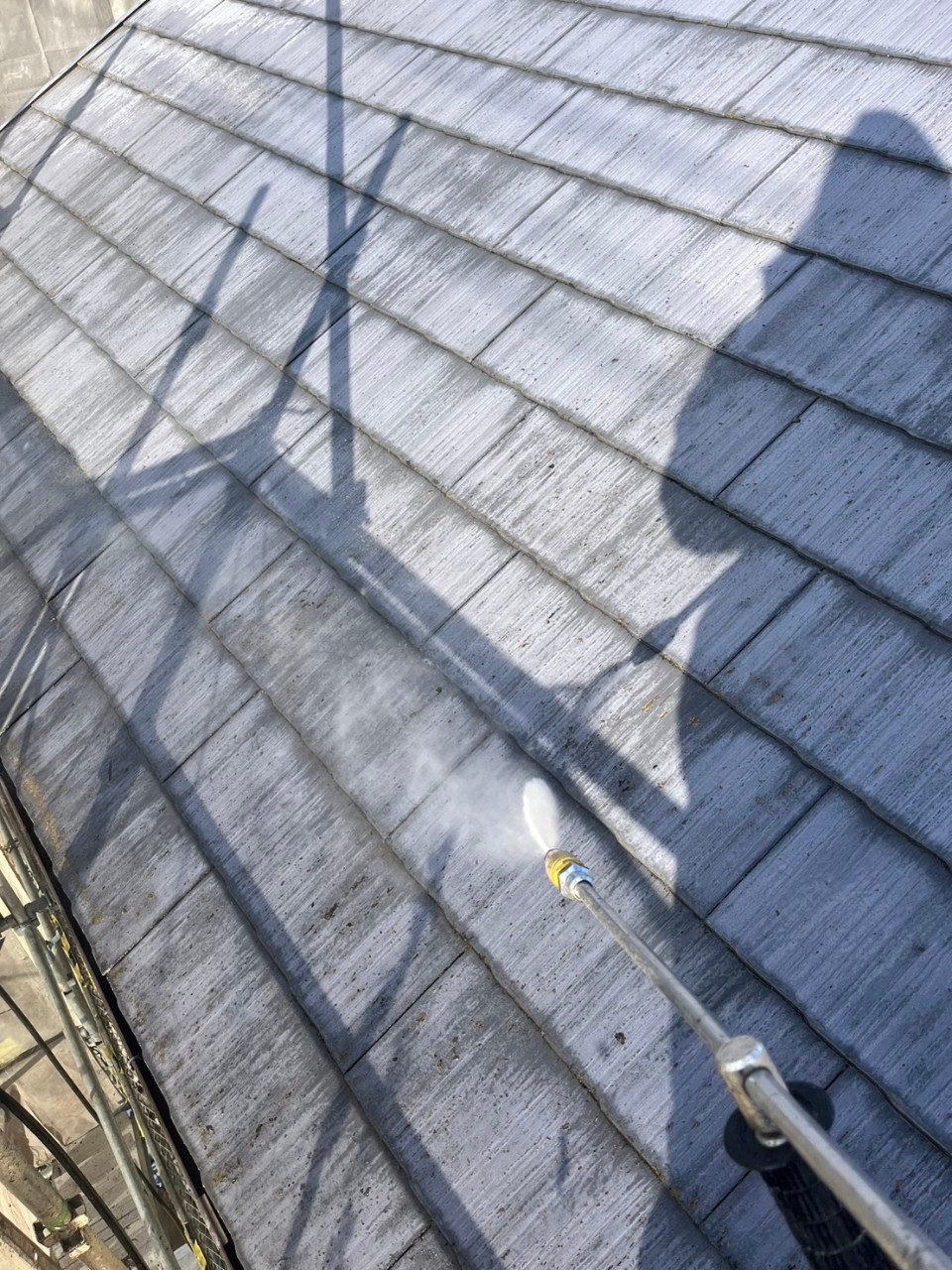 まずは屋根から高圧洗浄を行っていきます。