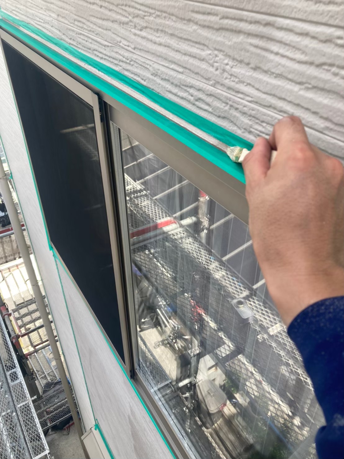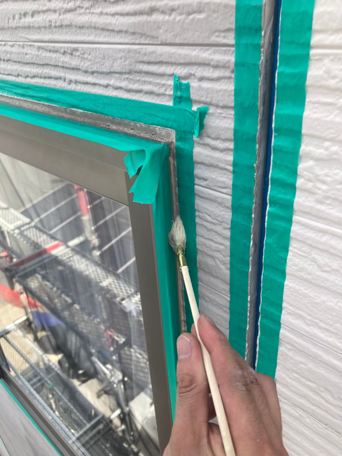 まずは、目地や窓サッシにプライマーを塗布していきます。