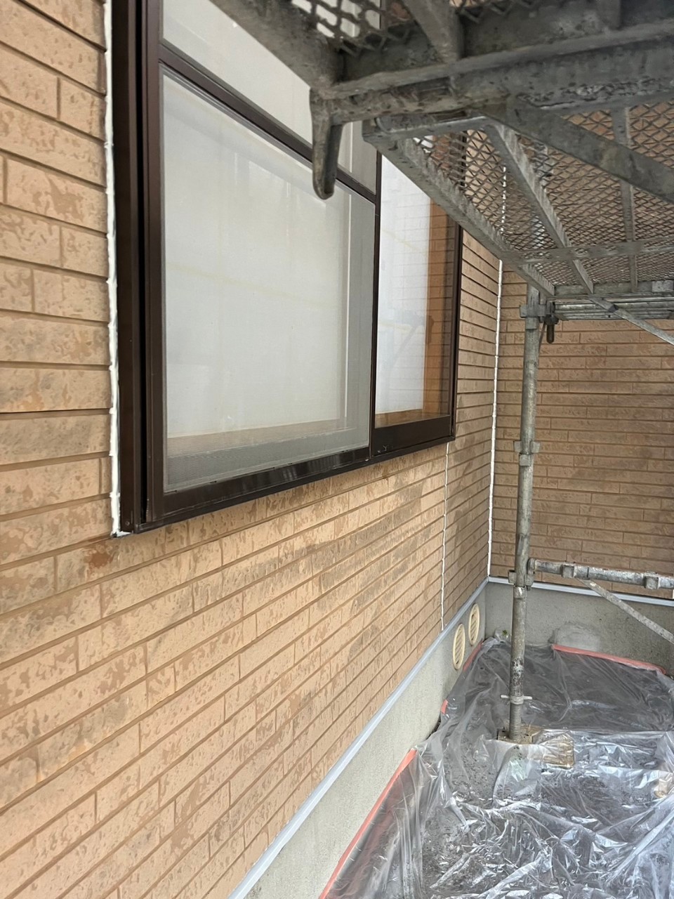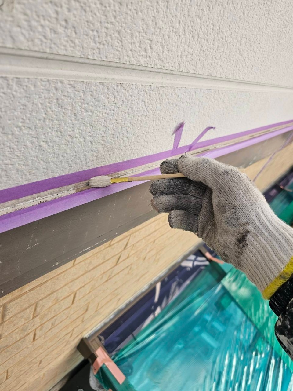まずは打ち替えの前に、目地や窓サッシ目地にプライマーを塗布していきます。