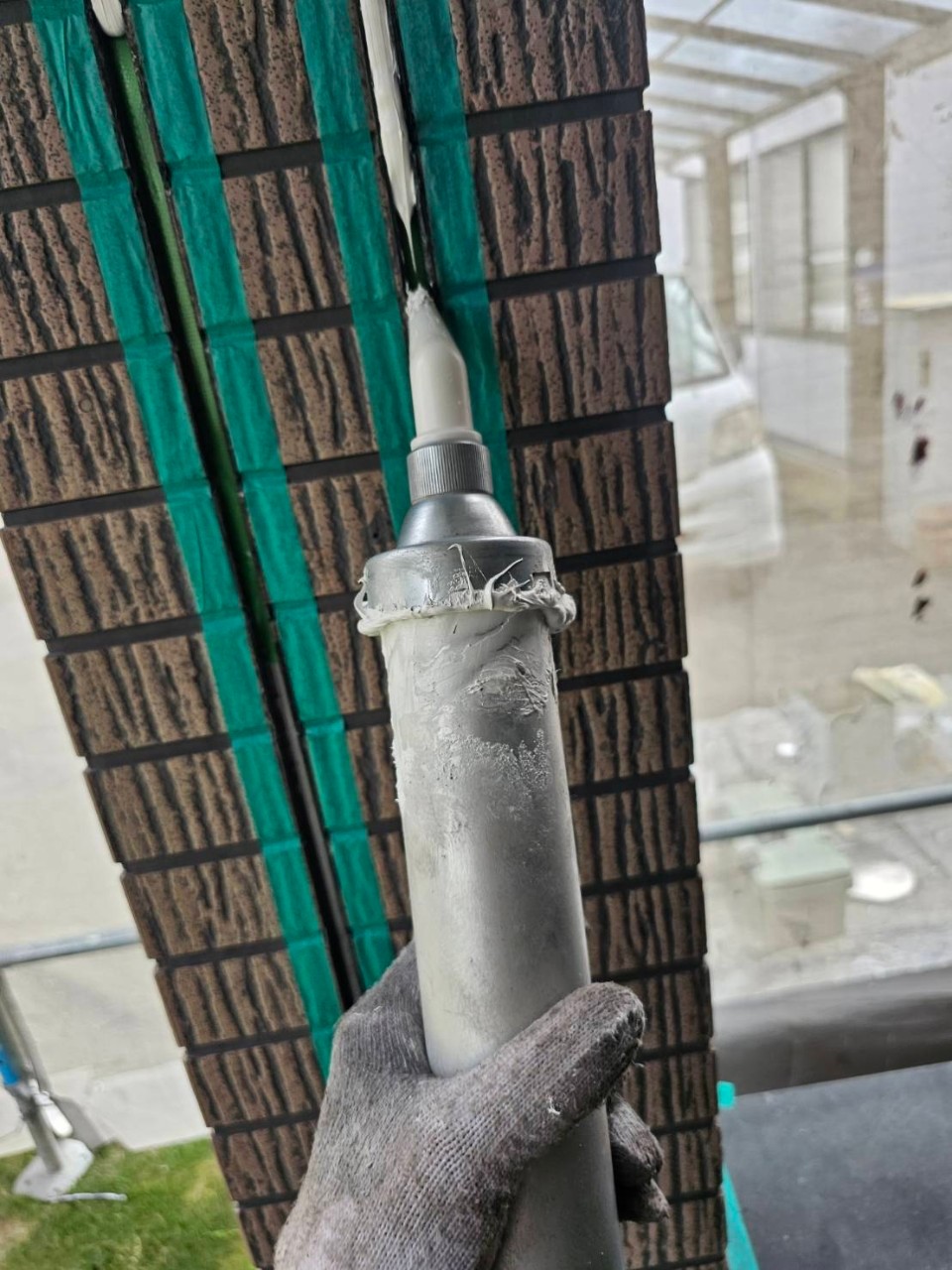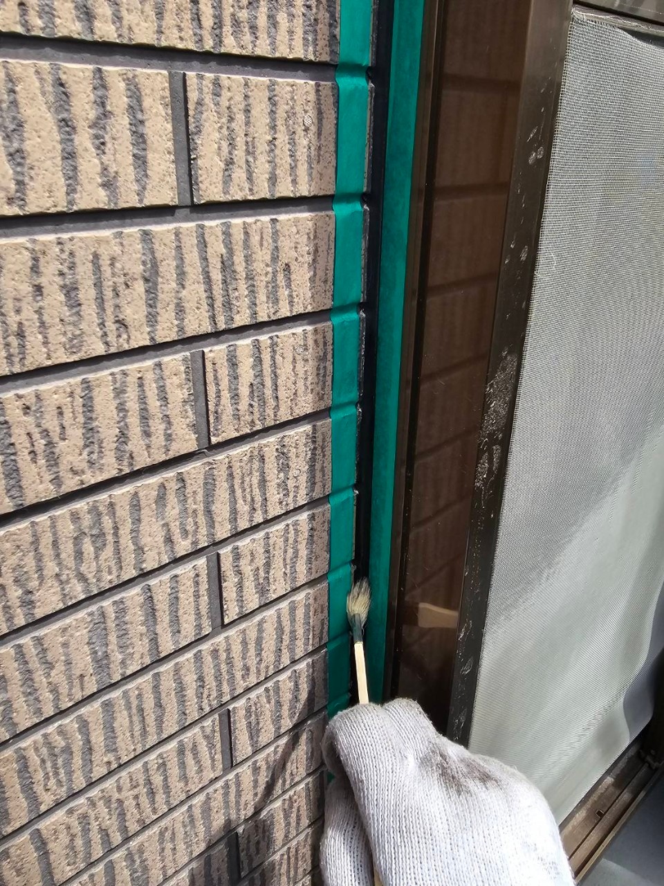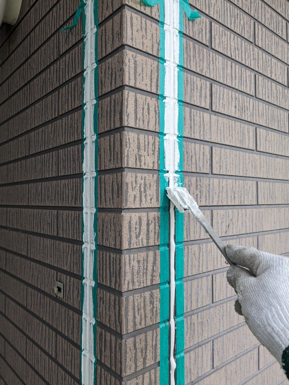 まずは密着力を高める為に、目地側面にプライマーを添付していきます。