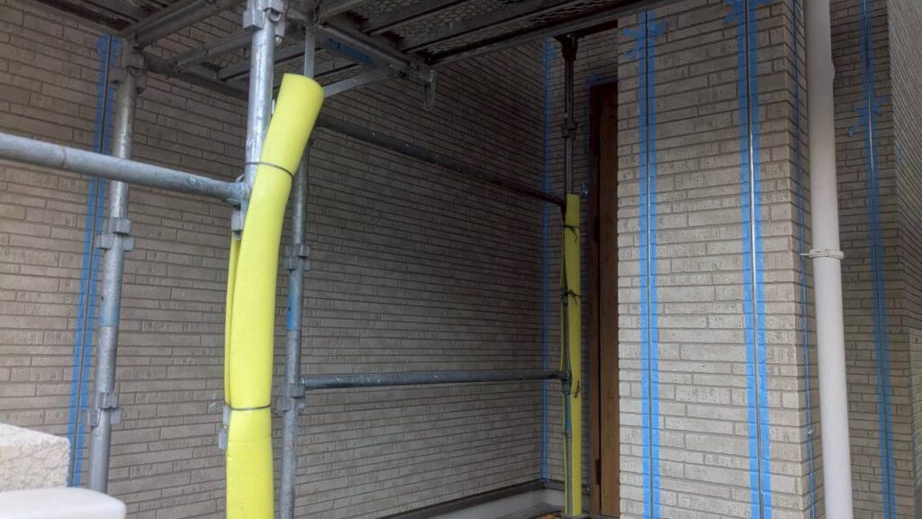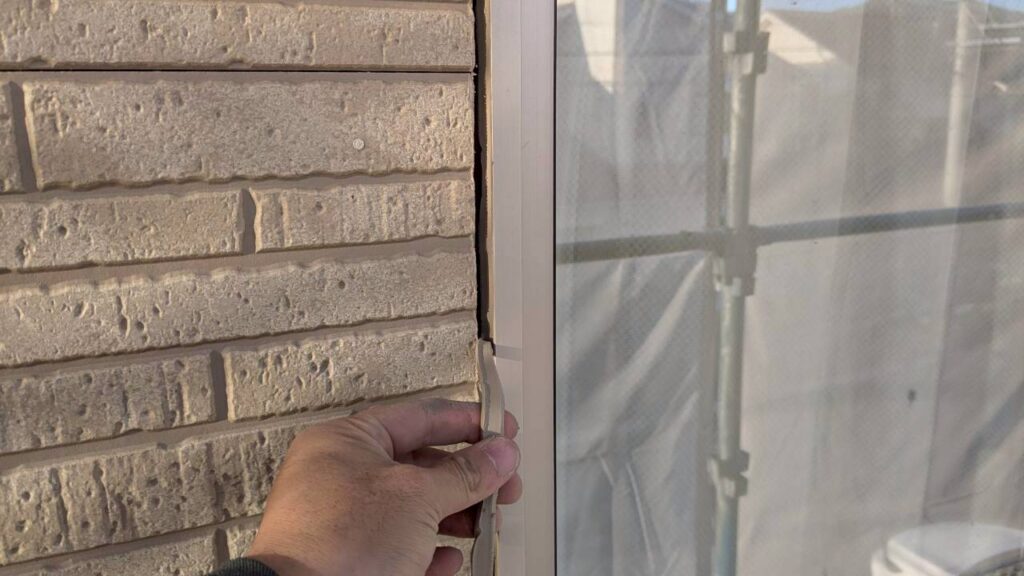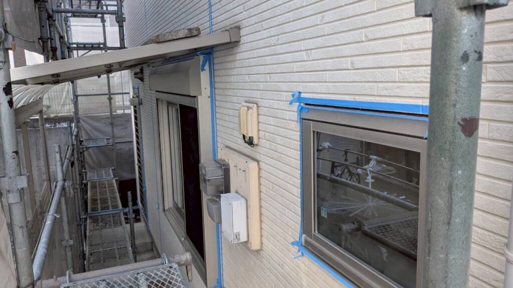 シーリング撤去を行った後に、マスキングテープを使用して養生作業を行っていきます。
