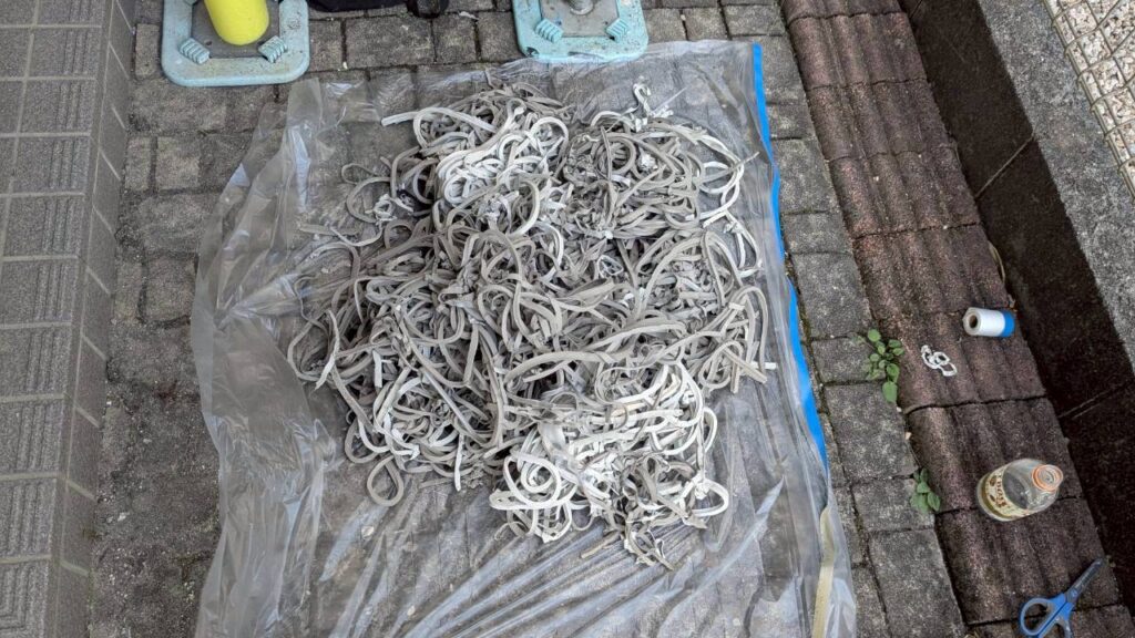 撤去後、サイディングの小口に残存する既存のシーリングを可能な限り取り除いていきます。