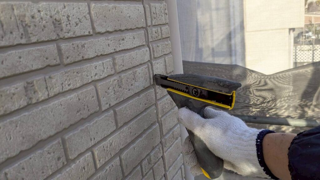 カッターや工具を使用してシーリングの撤去を行っていきます。