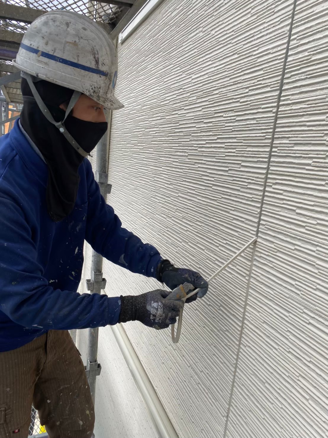 本日はシーリング撤去、打ち替えに伴う養生作業の様子をお伝えいたします。