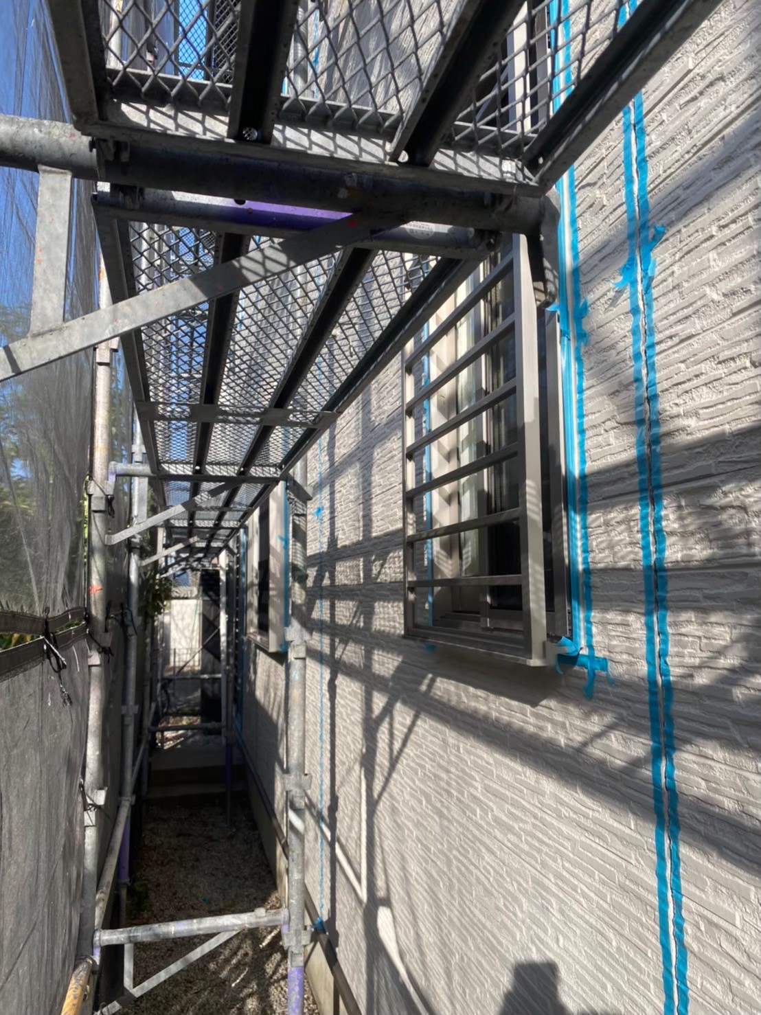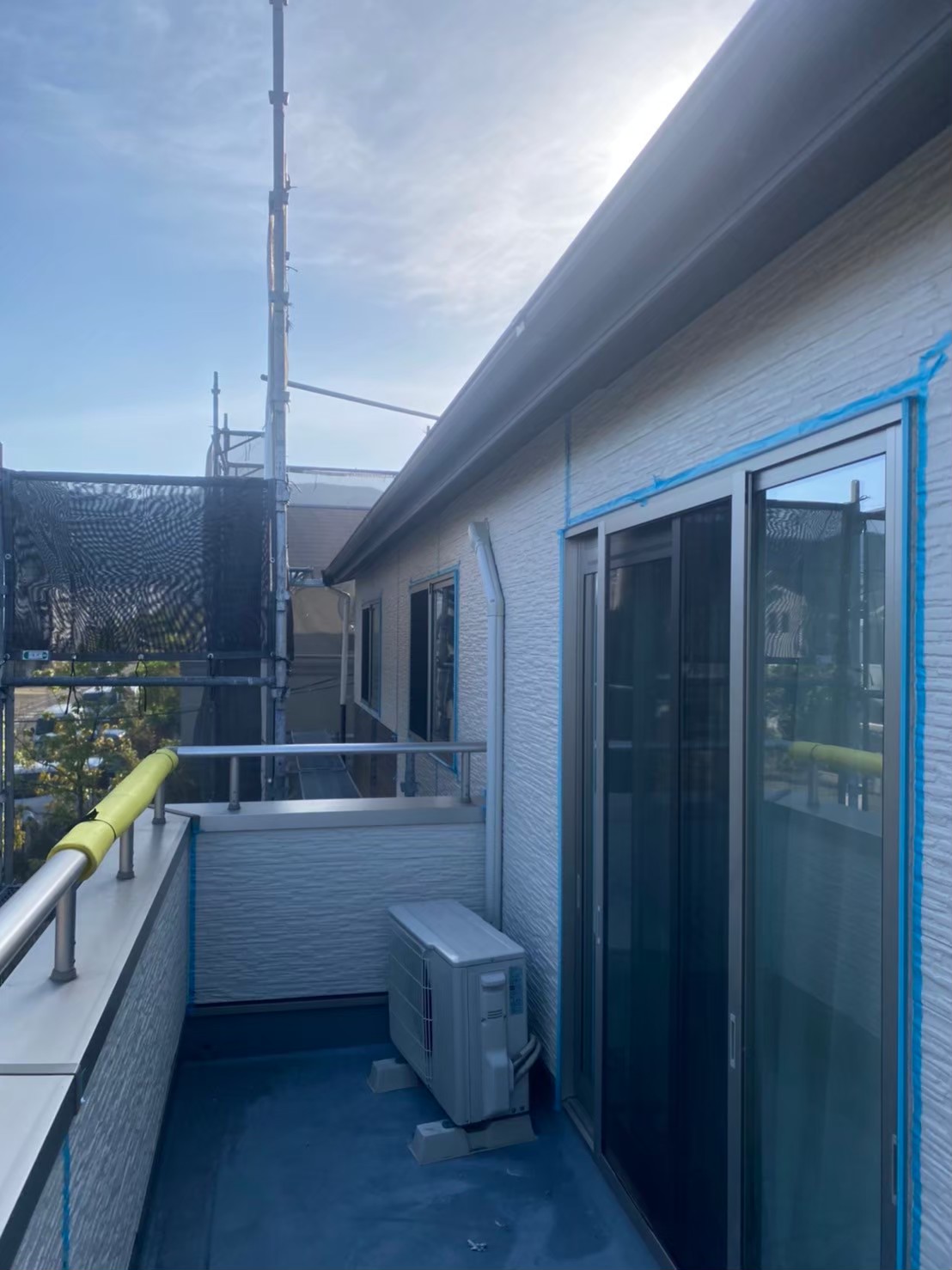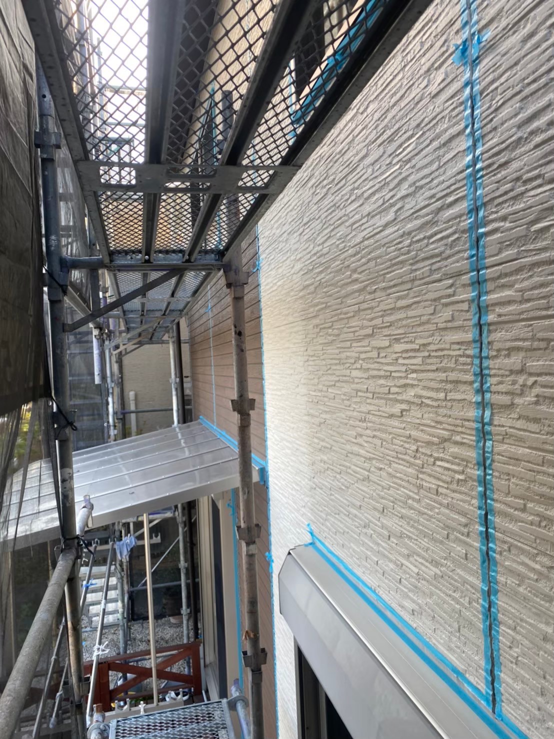 本日はシーリング撤去、打ち替えに伴う養生作業の様子をお伝えいたします。