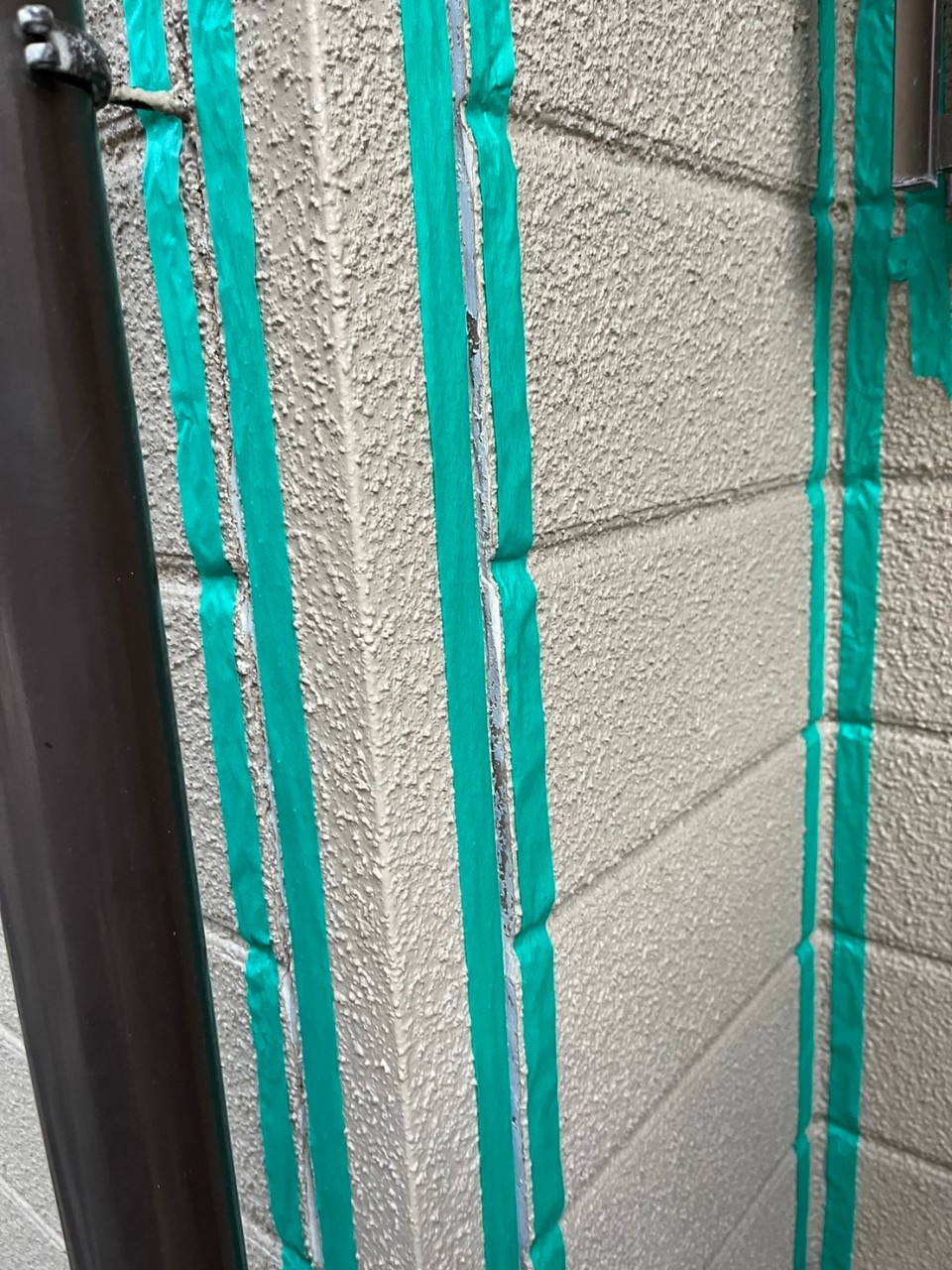 本日はシーリング撤去、打ち替えに伴う養生作業の様子をお伝えいたします。