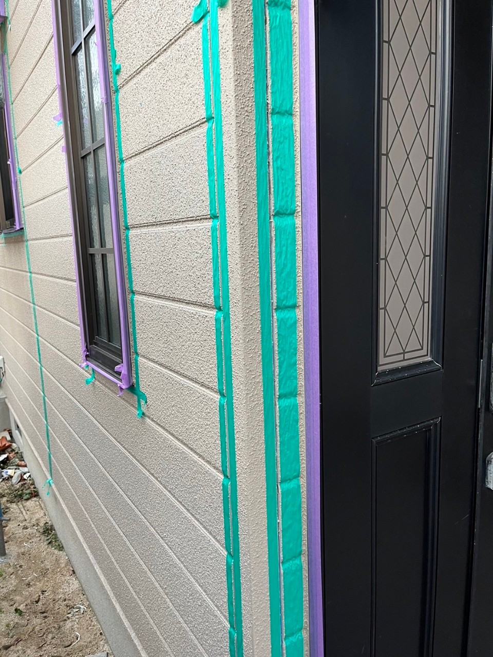 撤去後にマスキングテープを使用して養生作業を行っていきます。