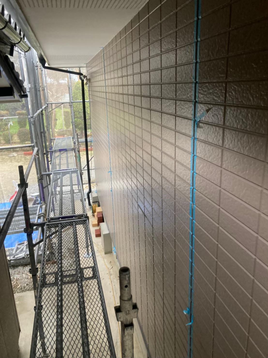 本日はシーリング撤去、打ち替えに伴う養生作業の様子をお伝えいたします。