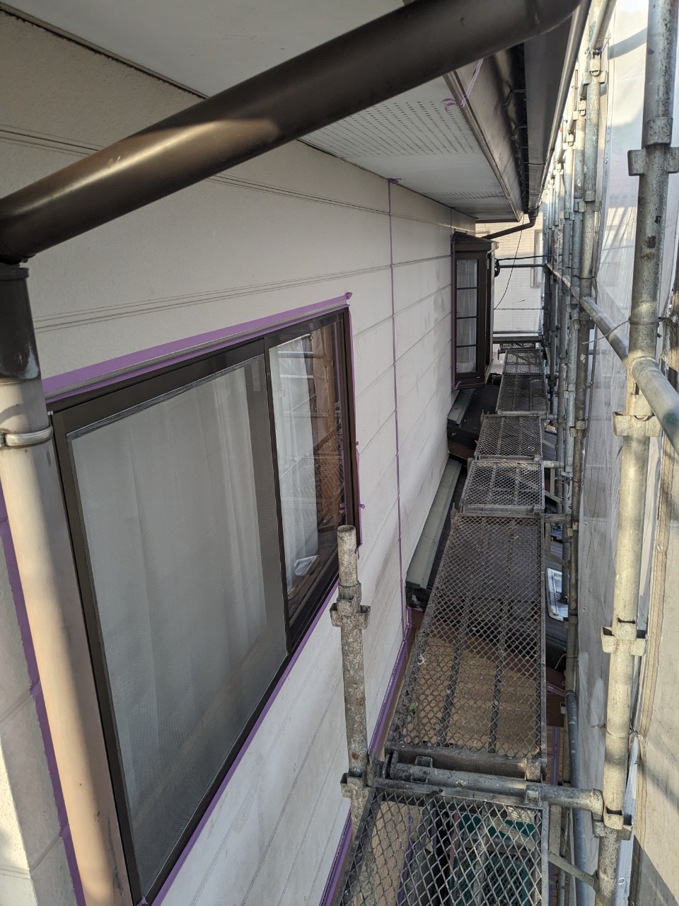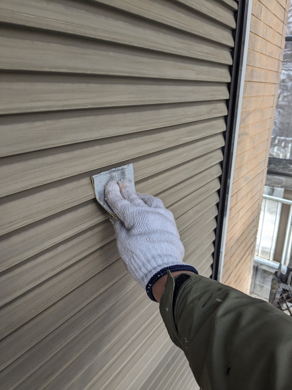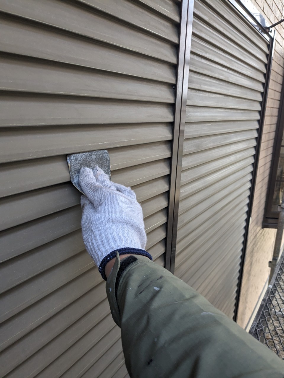 本日はシーリング撤去、打ち替えに伴う養生作業、雨戸ケレン作業の様子をお伝えいたします。