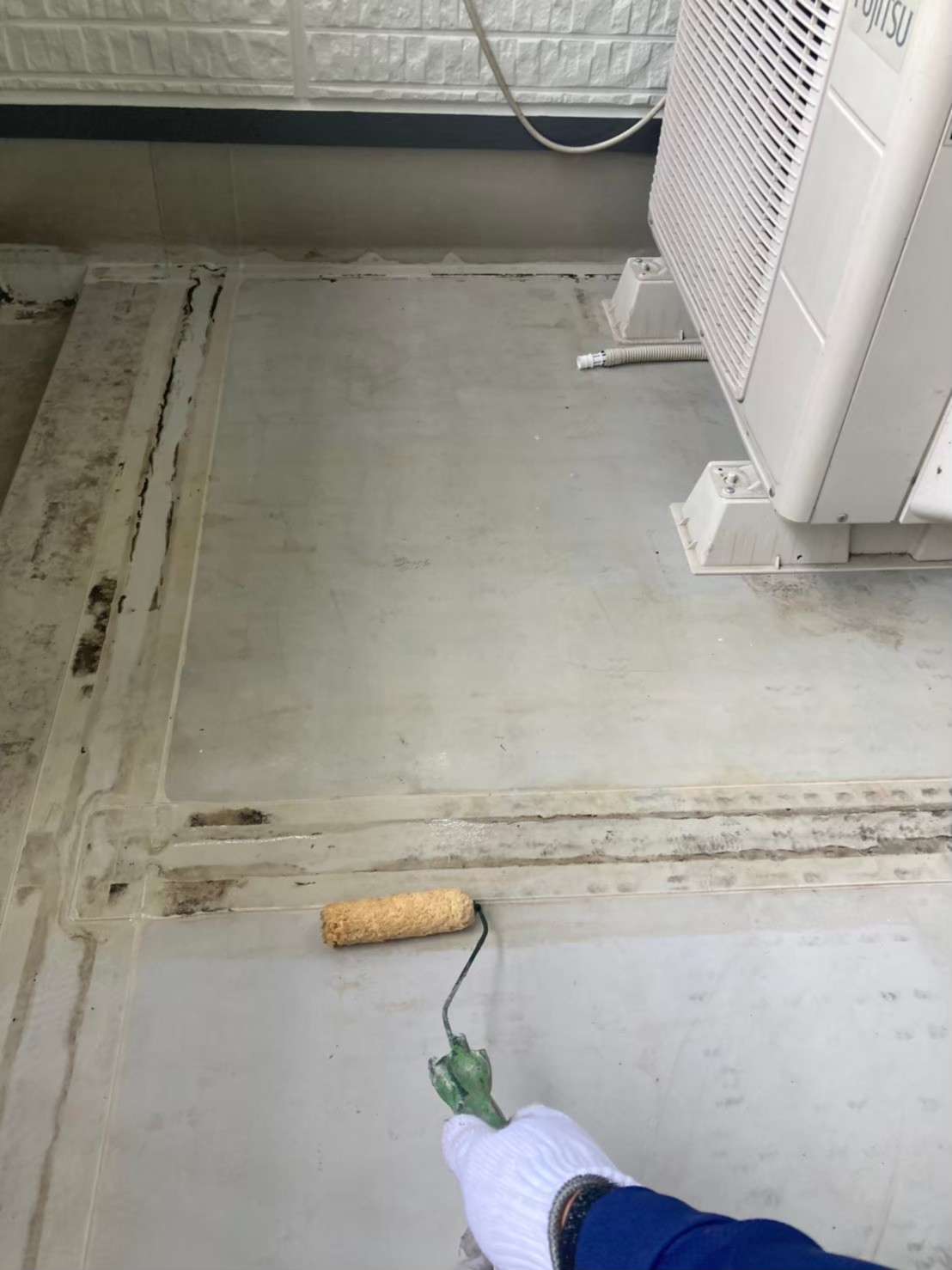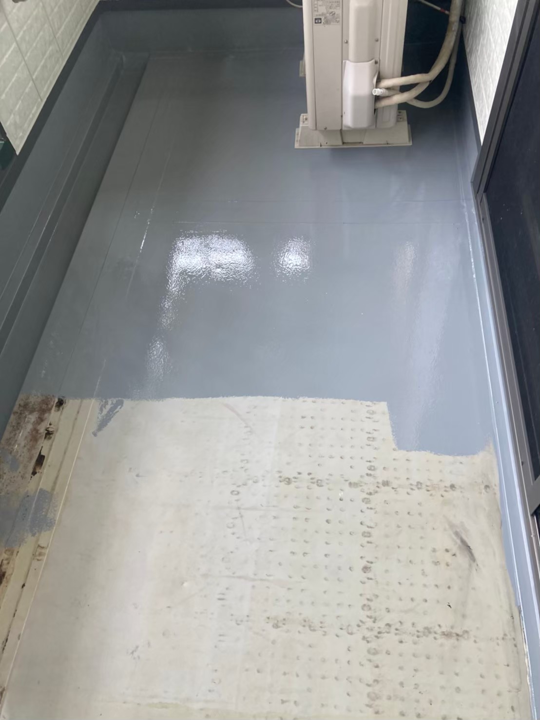 本日はバルコニー床のトップコート、手直しの様子をお伝えいたします。