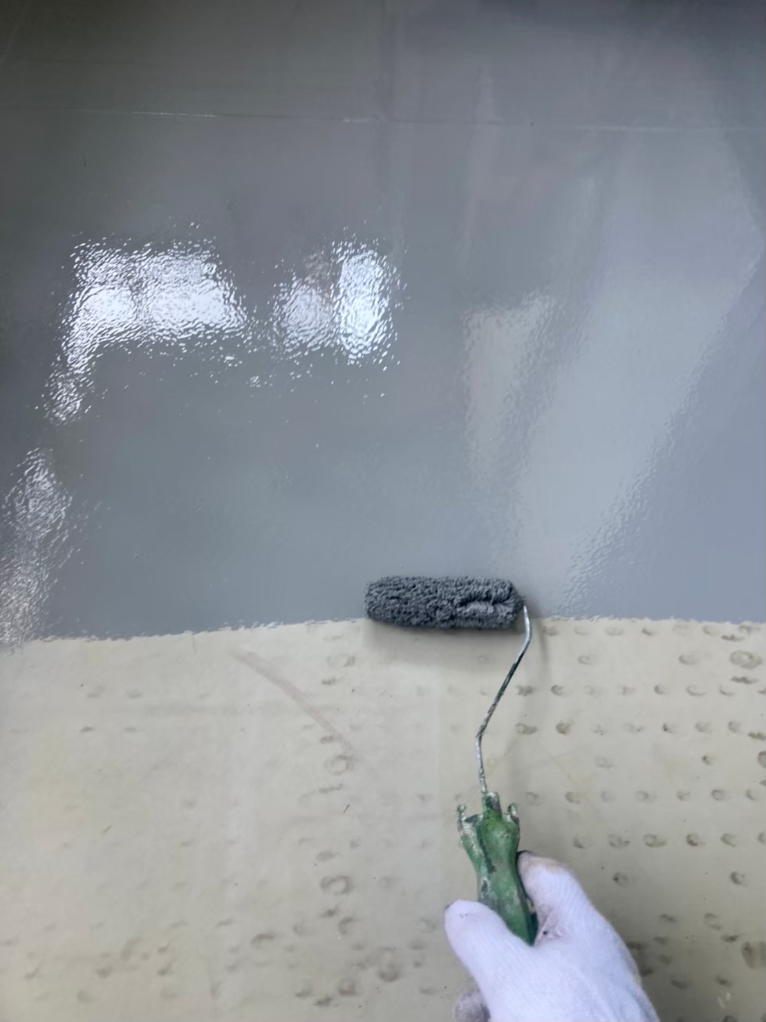 乾燥しましたら、プルーフロンGRトップにて塗布を行っていきます。