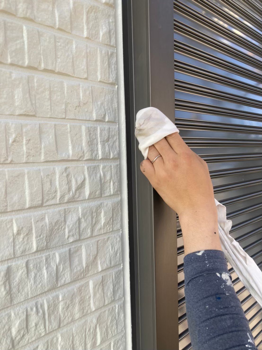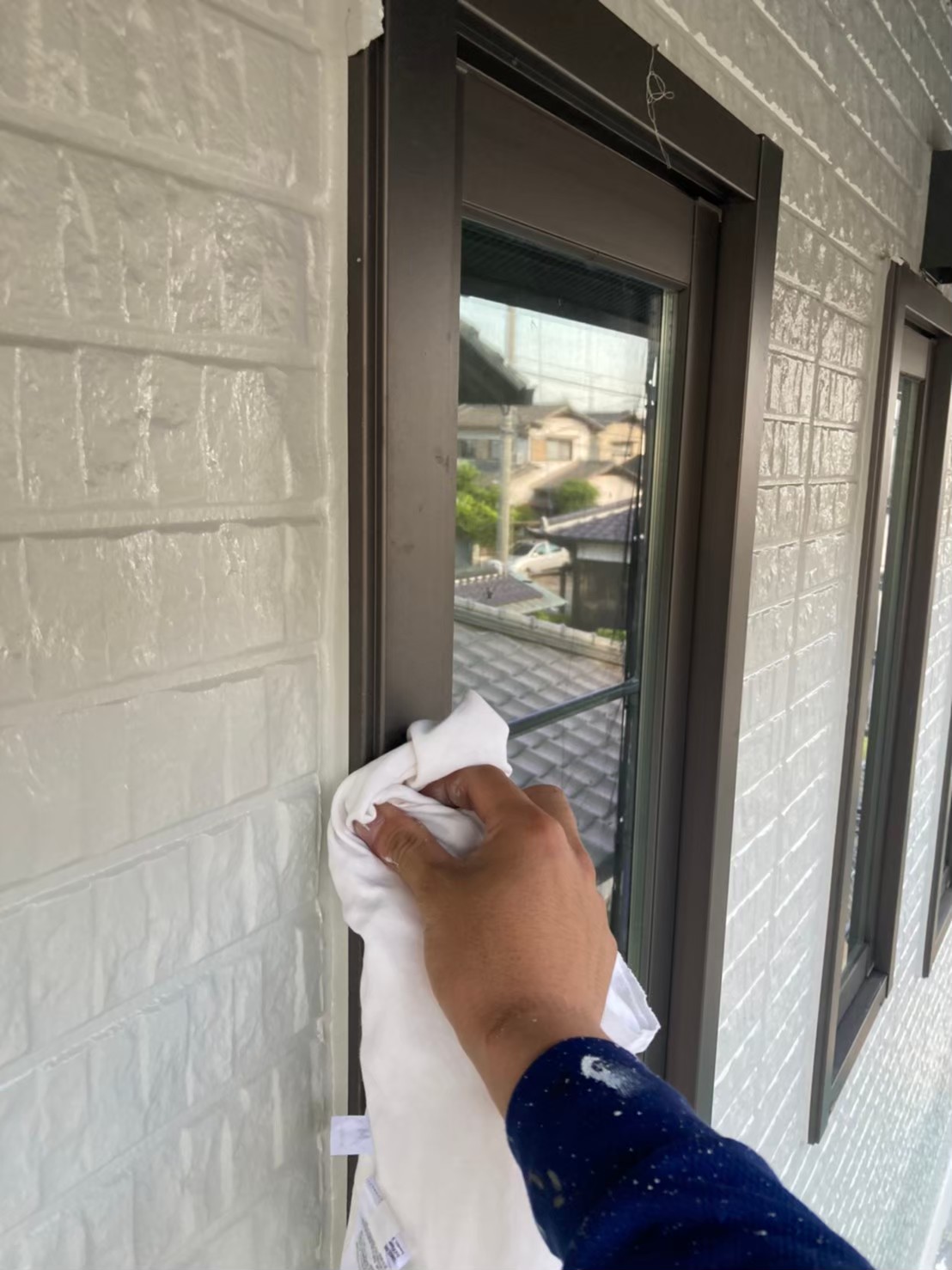 外壁のタッチアップや窓サッシに付着してしまった塗料の掃除などを行っていきます。