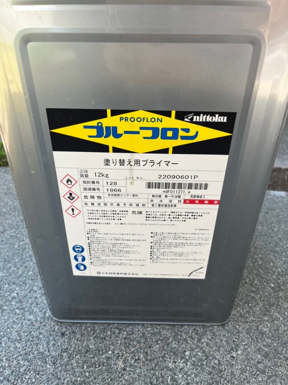脱脂を行った後に、塗り替え専用のプライマーの塗布を行い密着性を高めていきます。