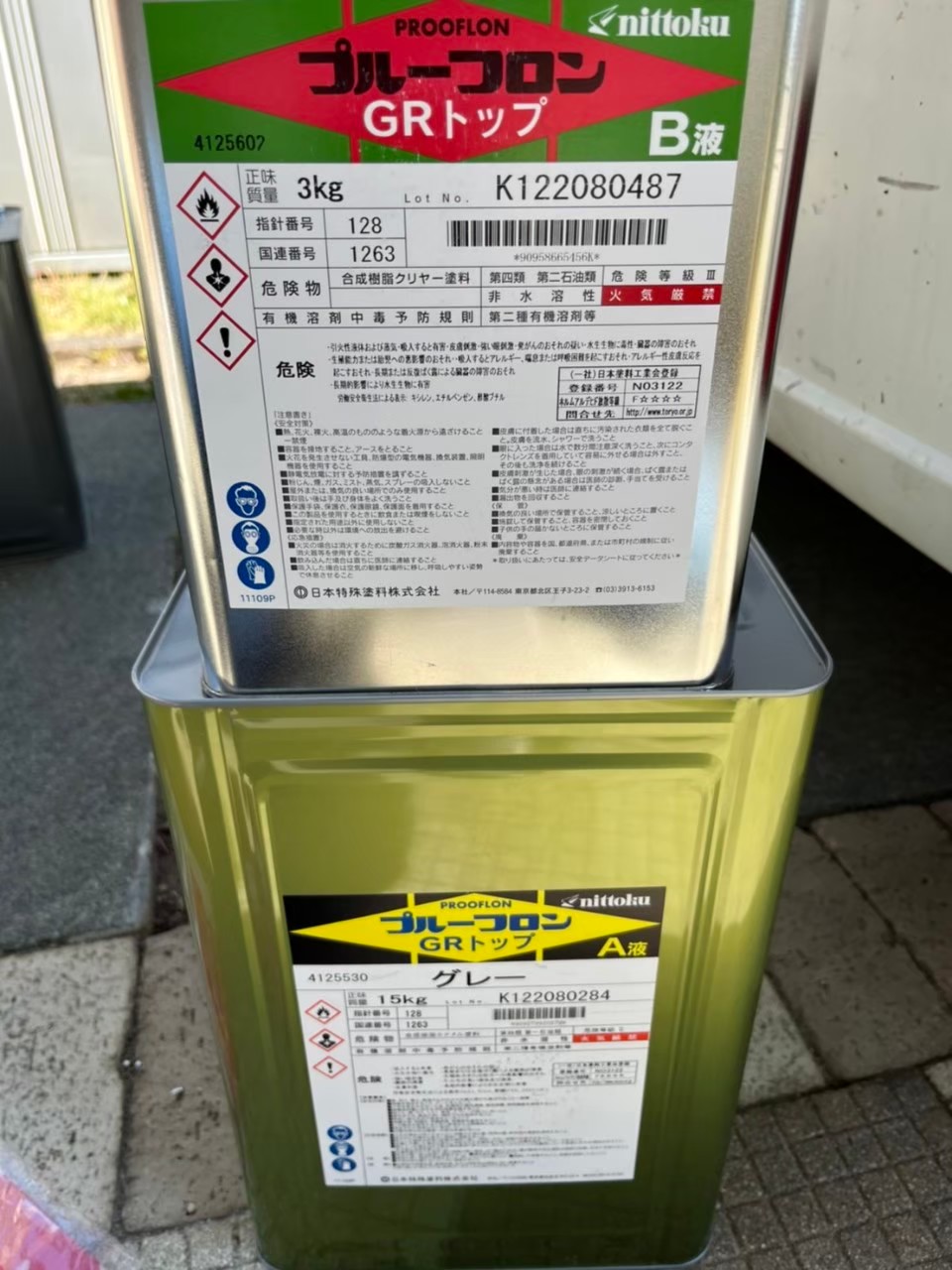 プライマーが乾燥した後に、プルーフロンGRトップにて塗布を行っていきます。