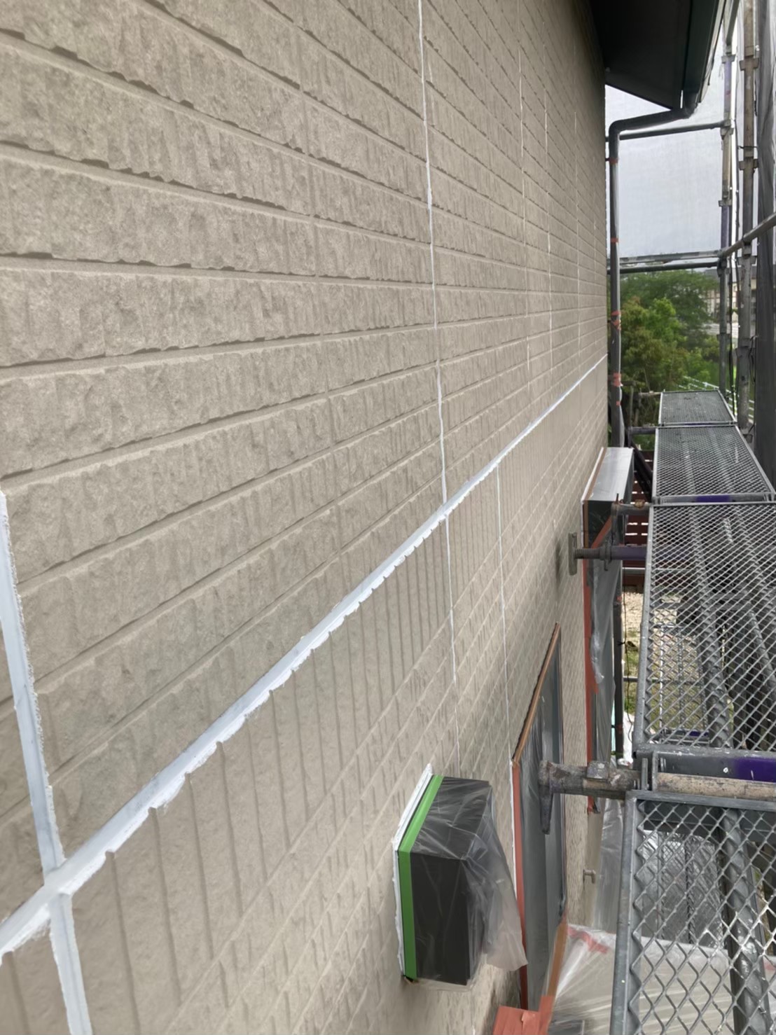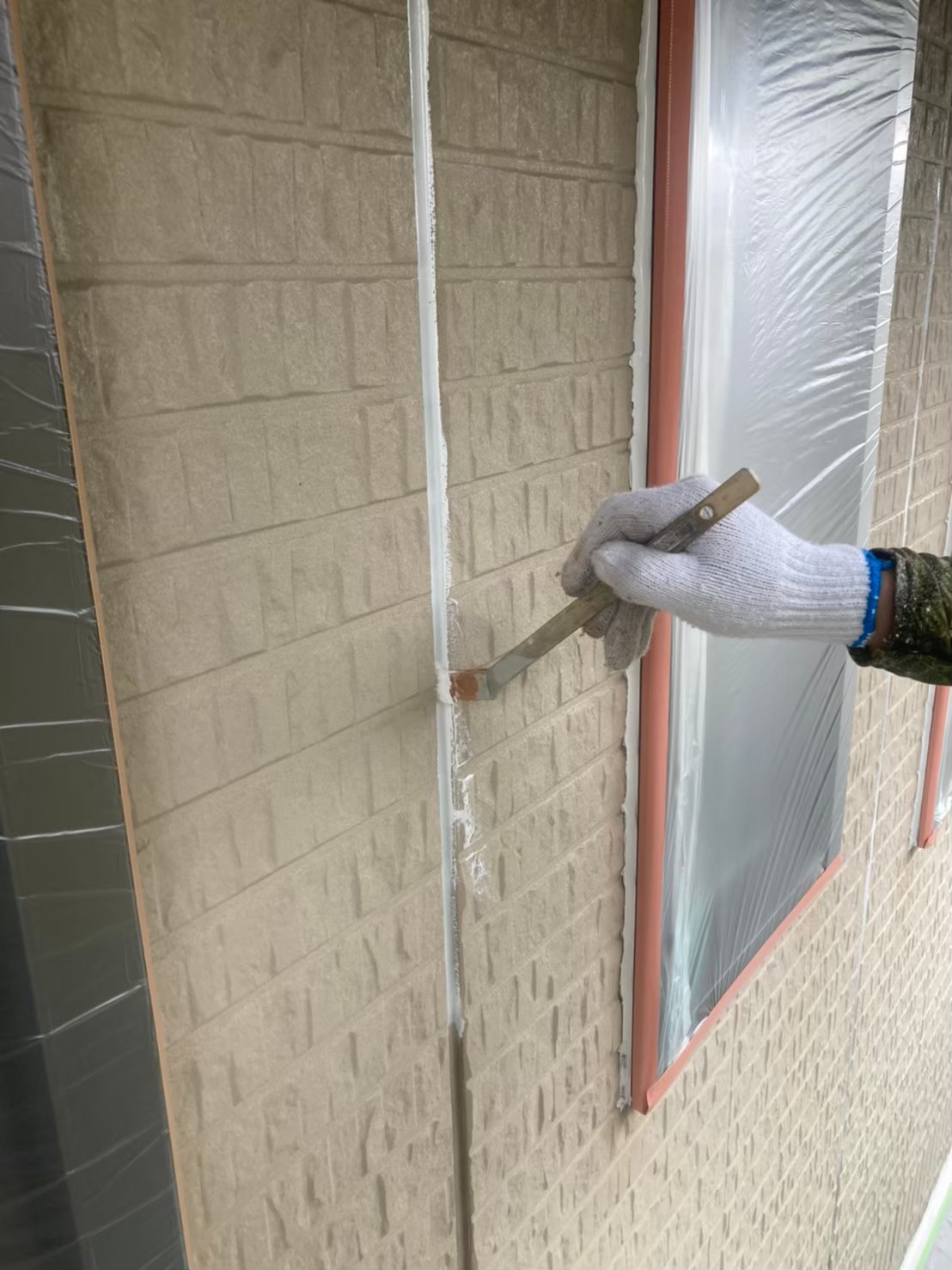 本日は外壁目地のプライマー処理の様子をお伝えいたします。