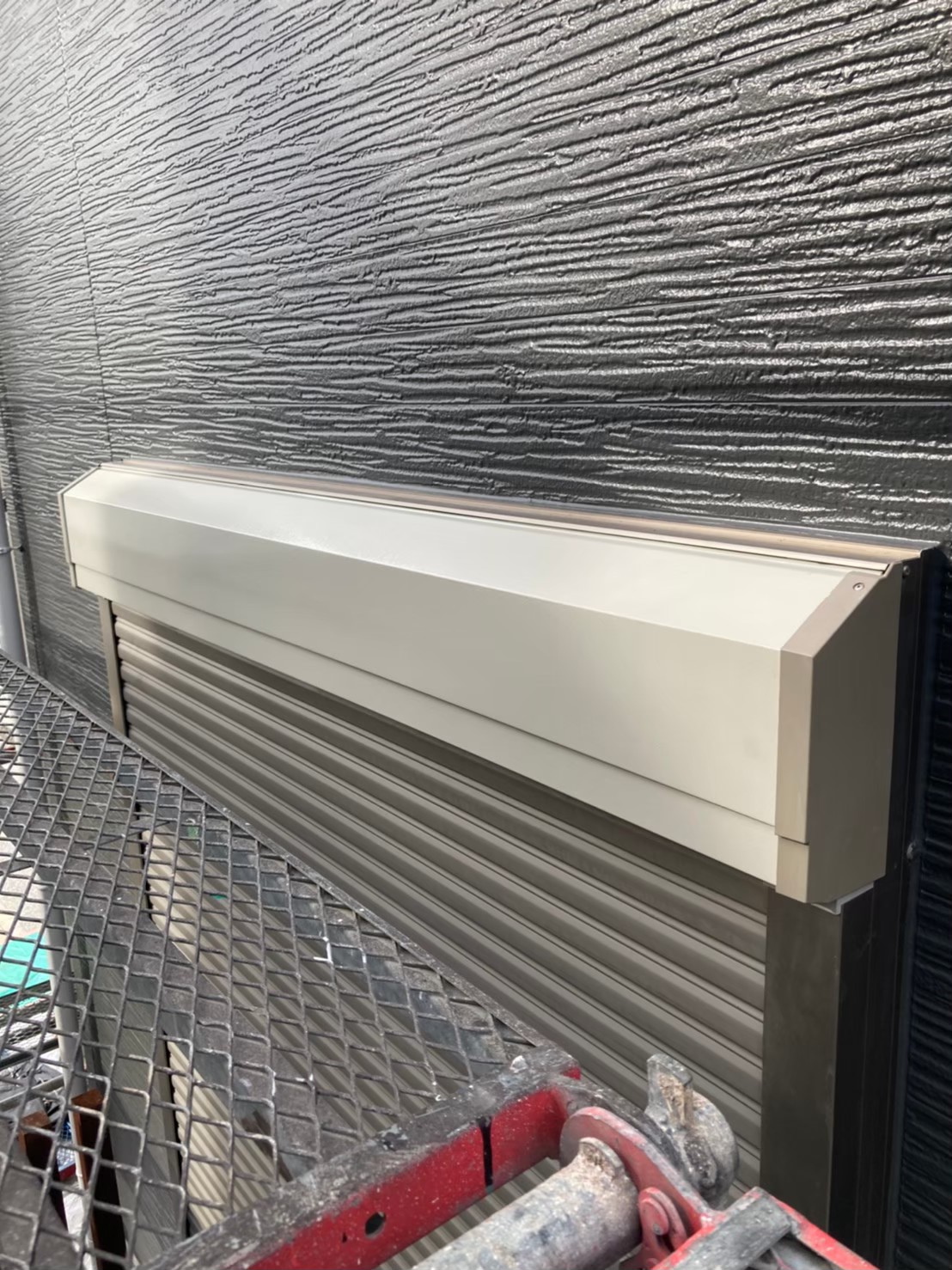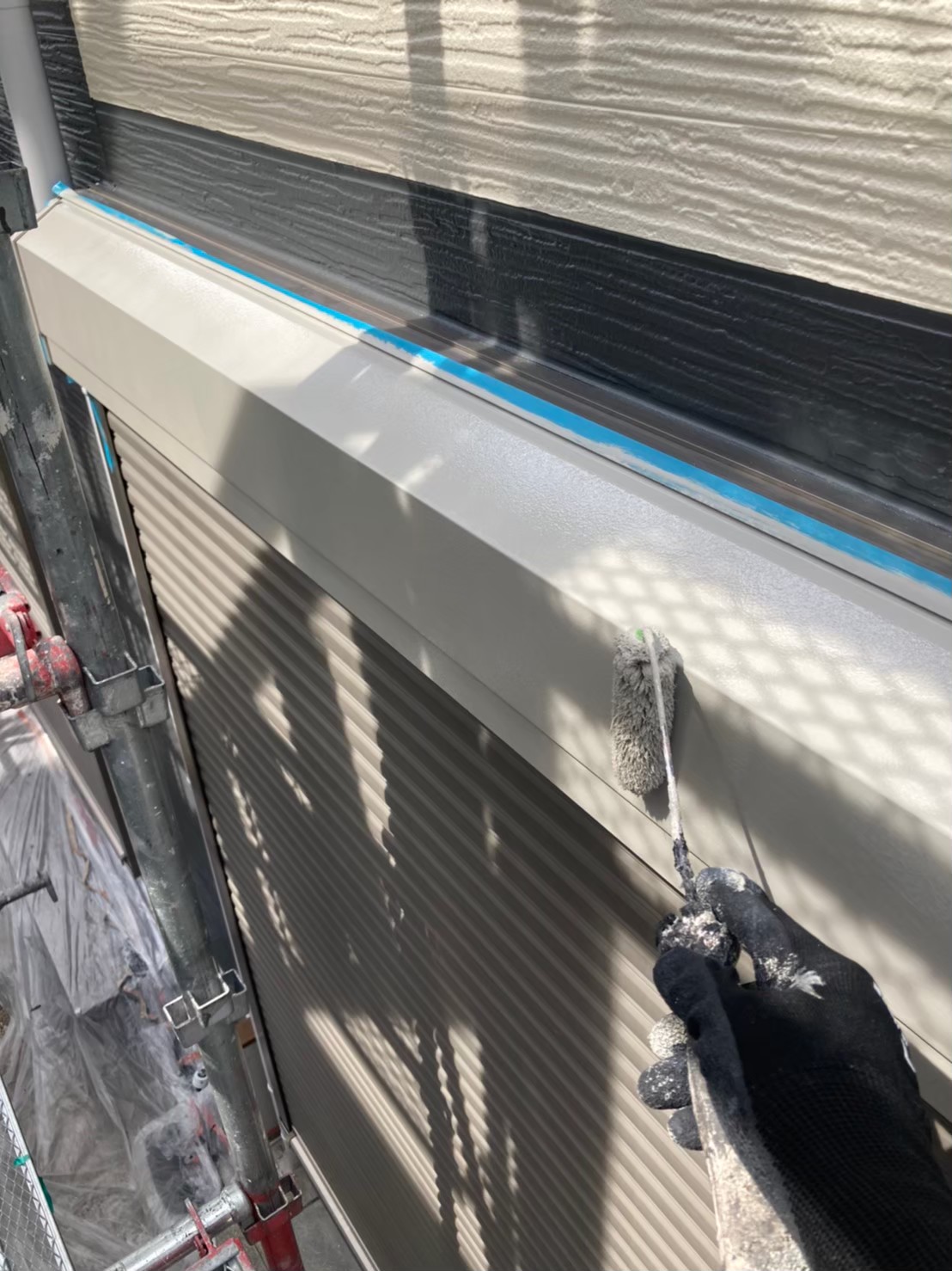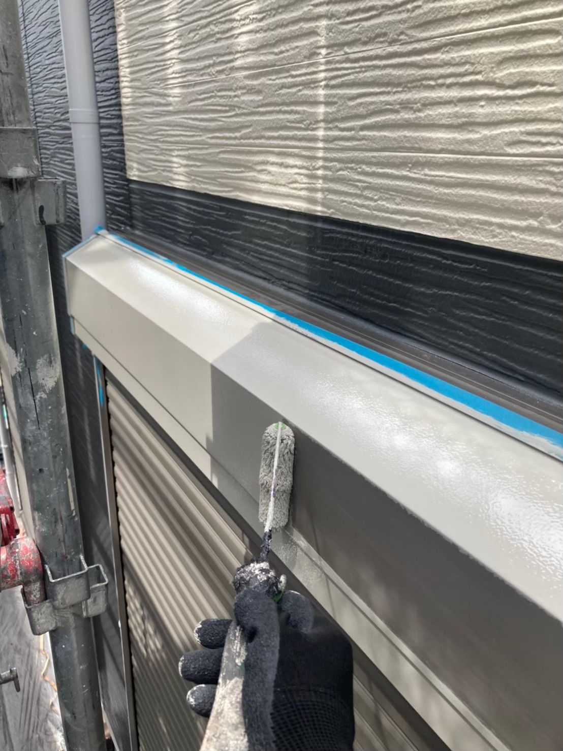 ケレン作業後、シャッターボックスや水切りはアイボリー色で塗装を行っていきます。