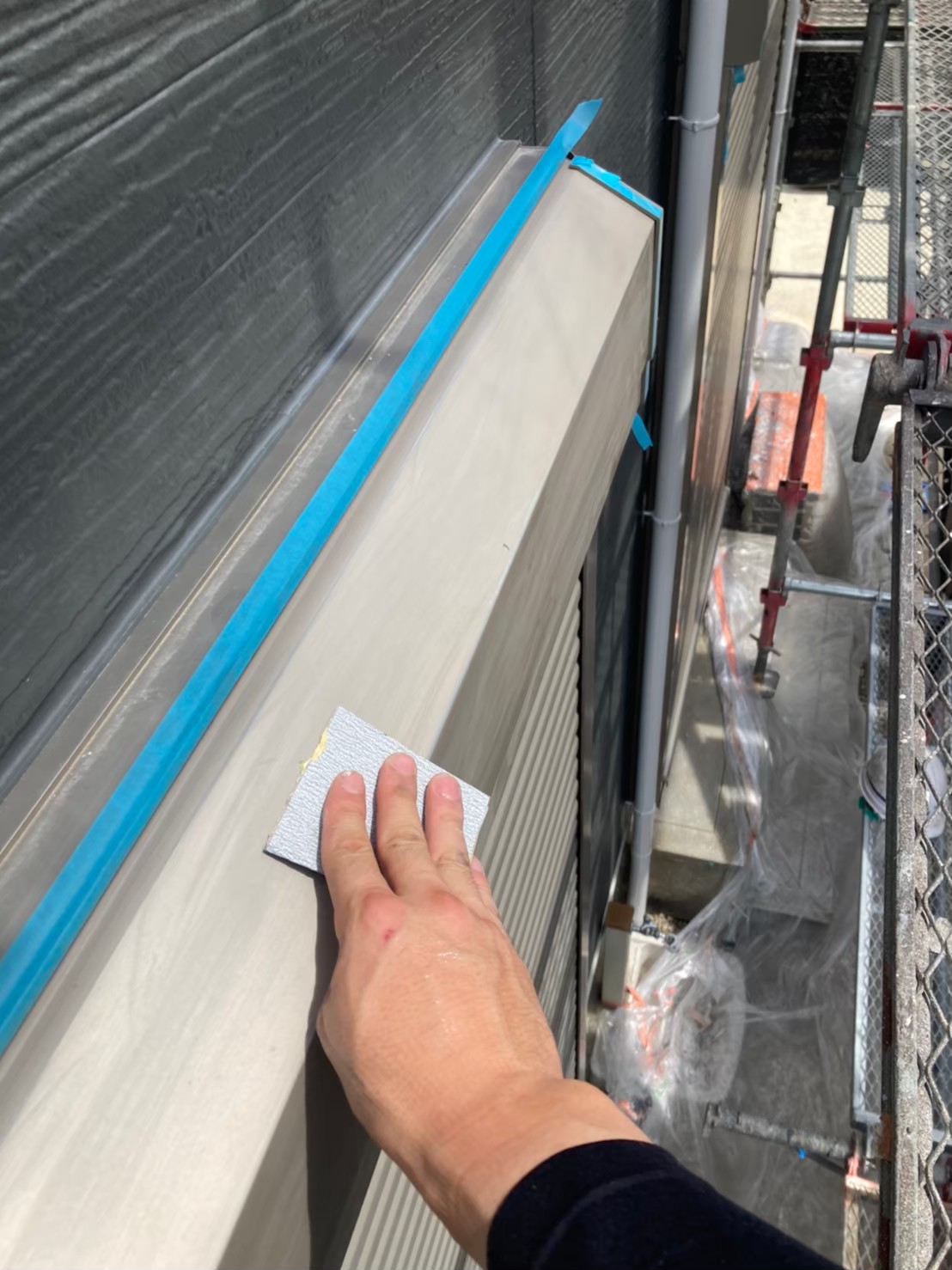 本日は引き続き、付帯塗装の様子をお伝えいたします。