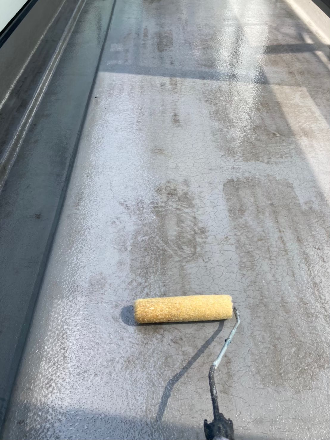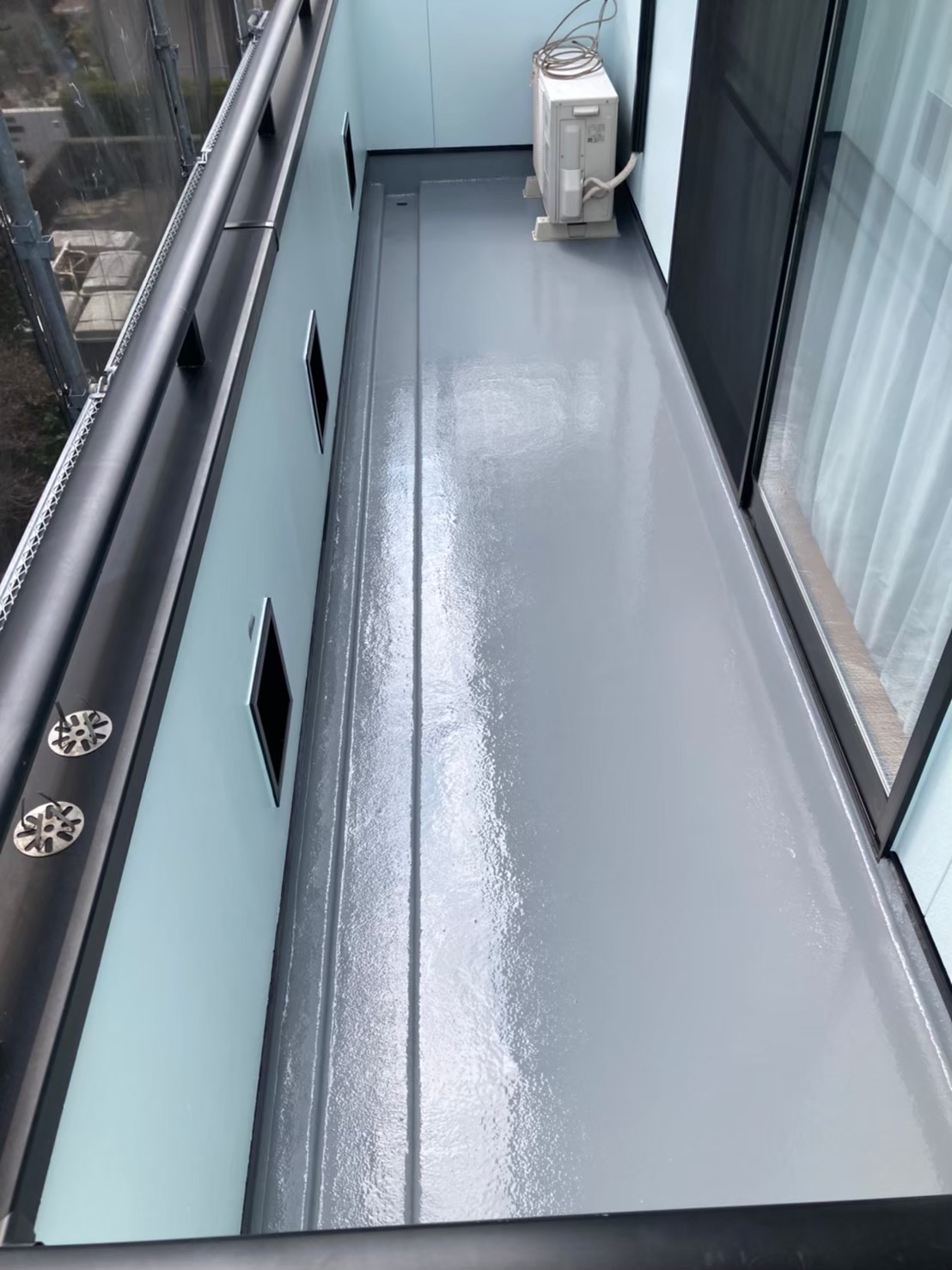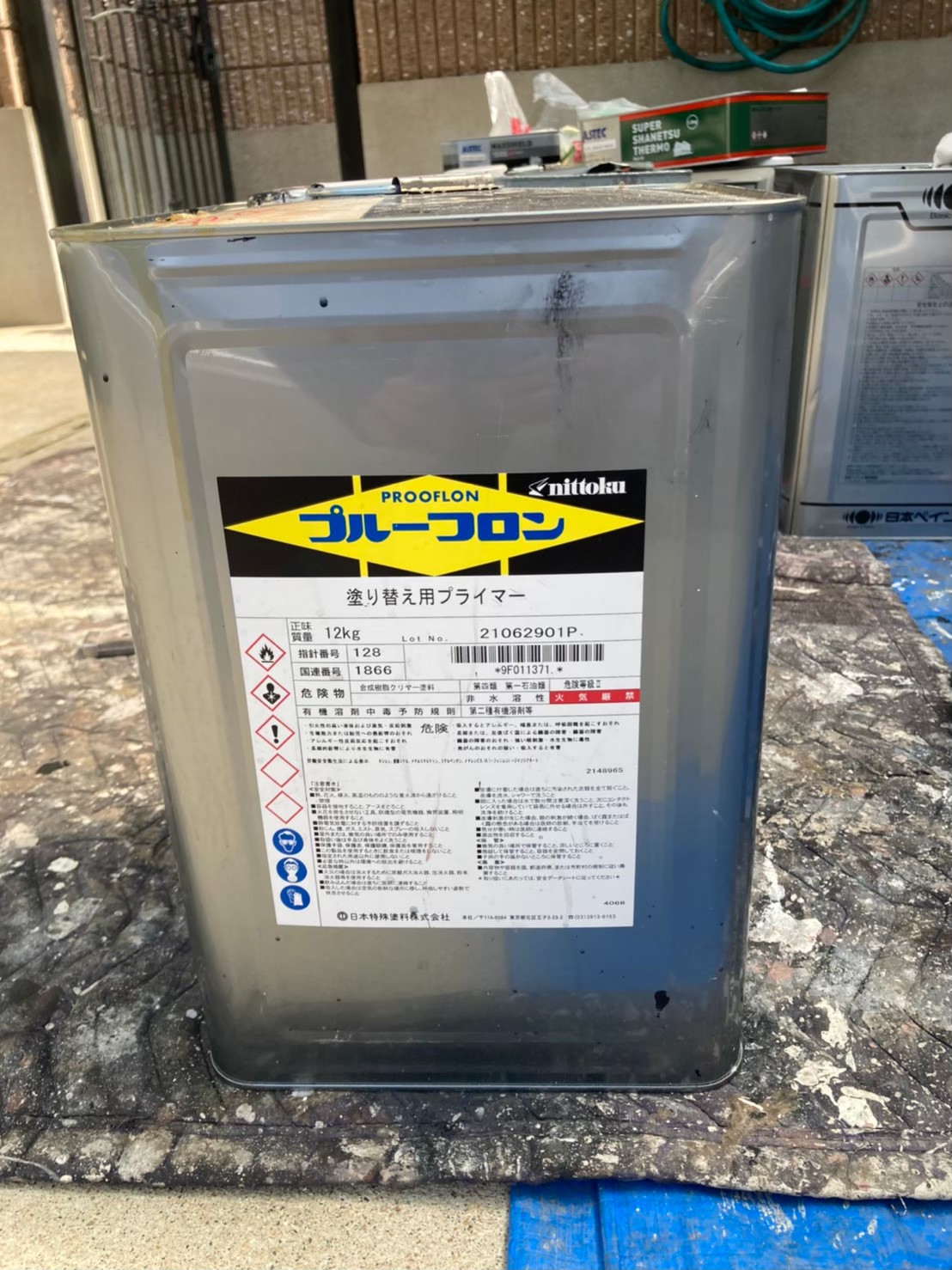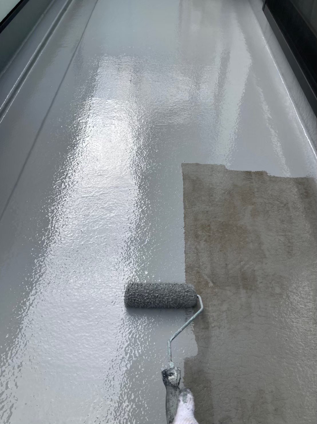 塗り替え専用のプライマーを塗布した後に日本特殊塗料 プルーフロンGRトップにて