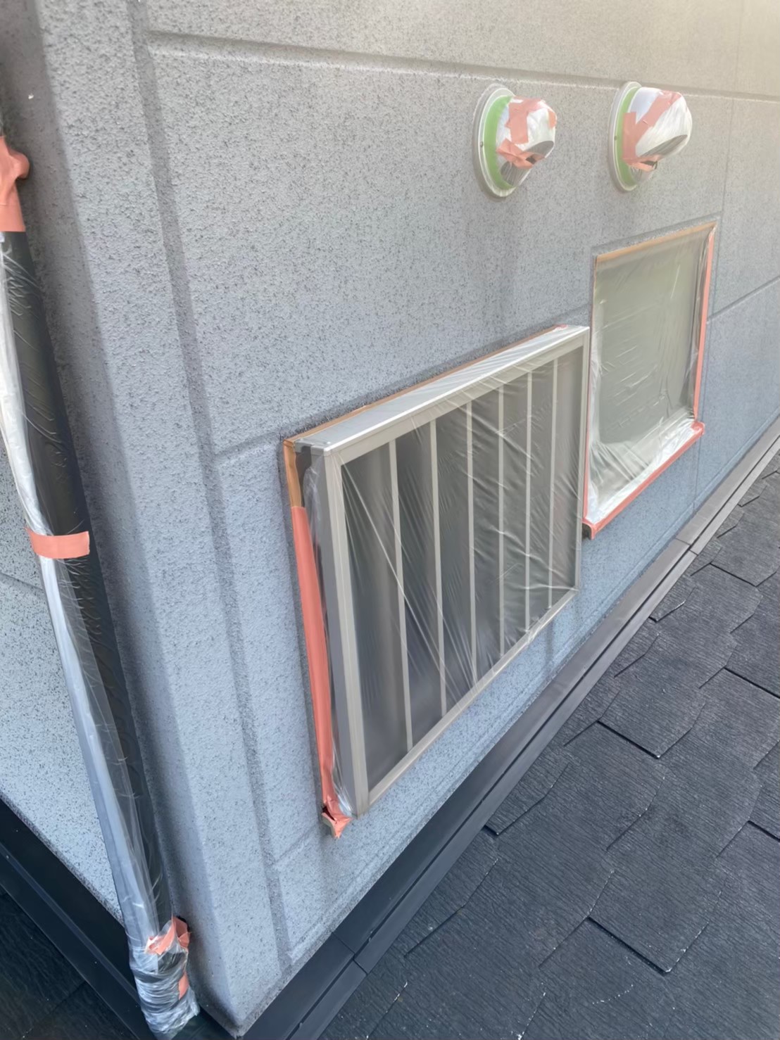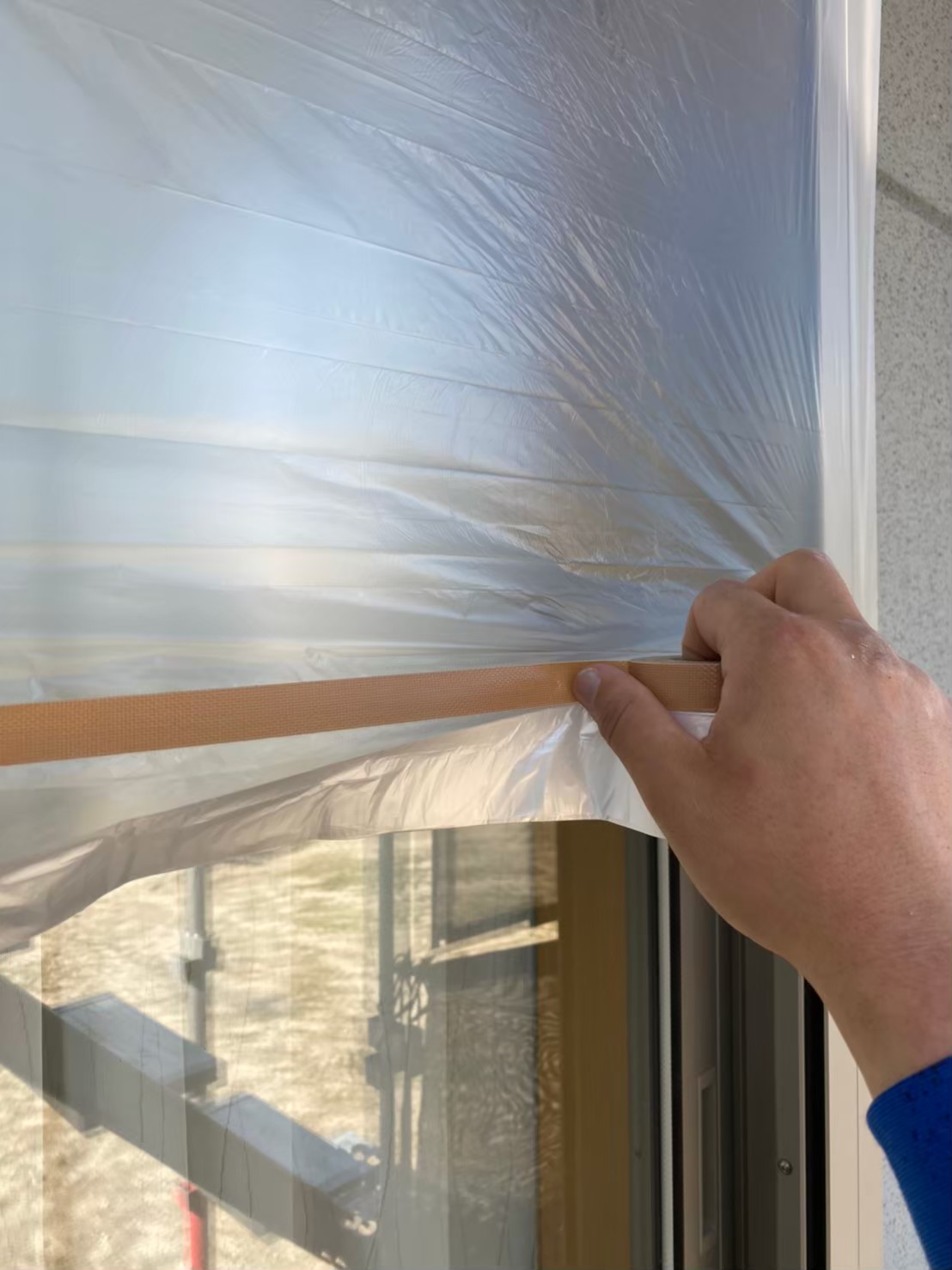 養生を行うと窓の開閉が出来なくなりますが、しっかりとした塗装を行う為の重要な作業となります。