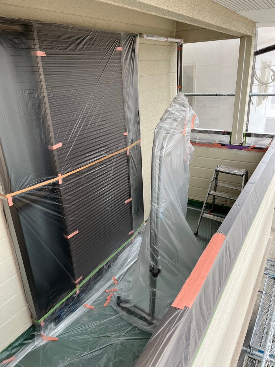 シワやビニールのたるみが無いようにしっかりと養生を行っていきます。