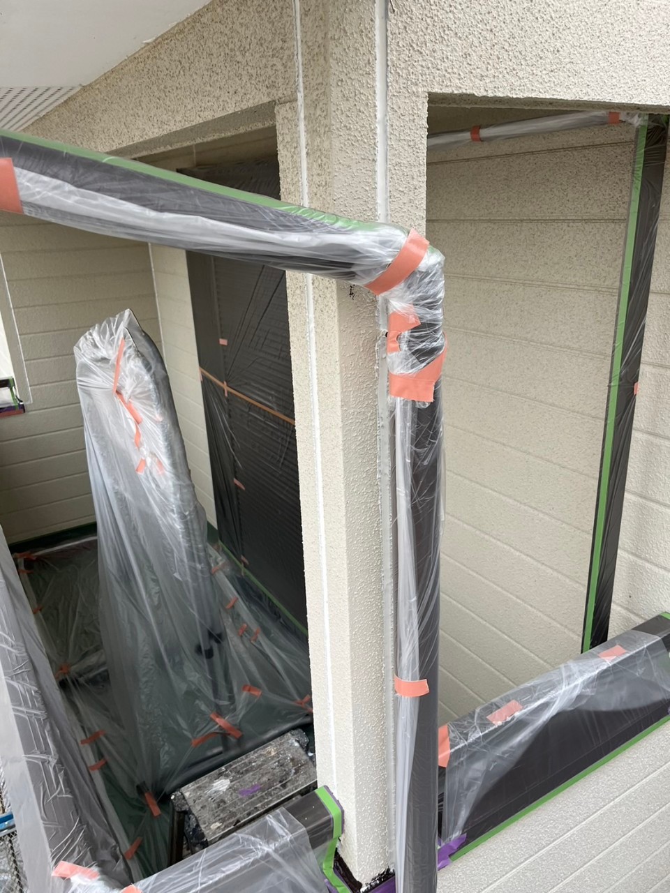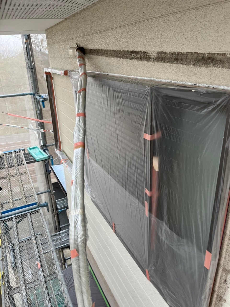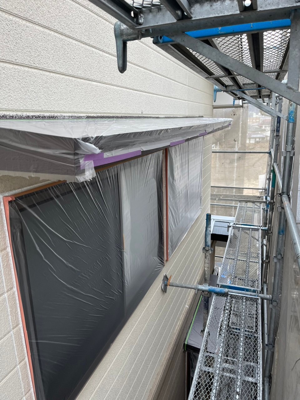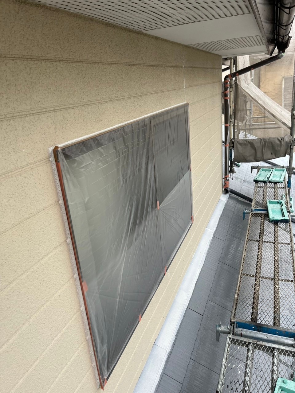養生を行うと窓の開閉が出来なくなりますが、しっかりとした塗装を行う為の重要な作業となります。