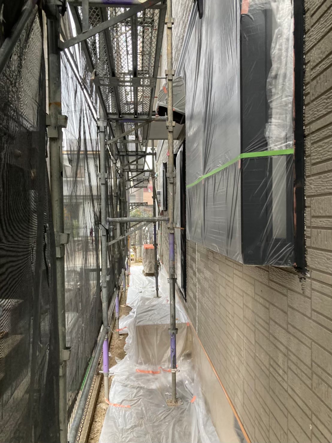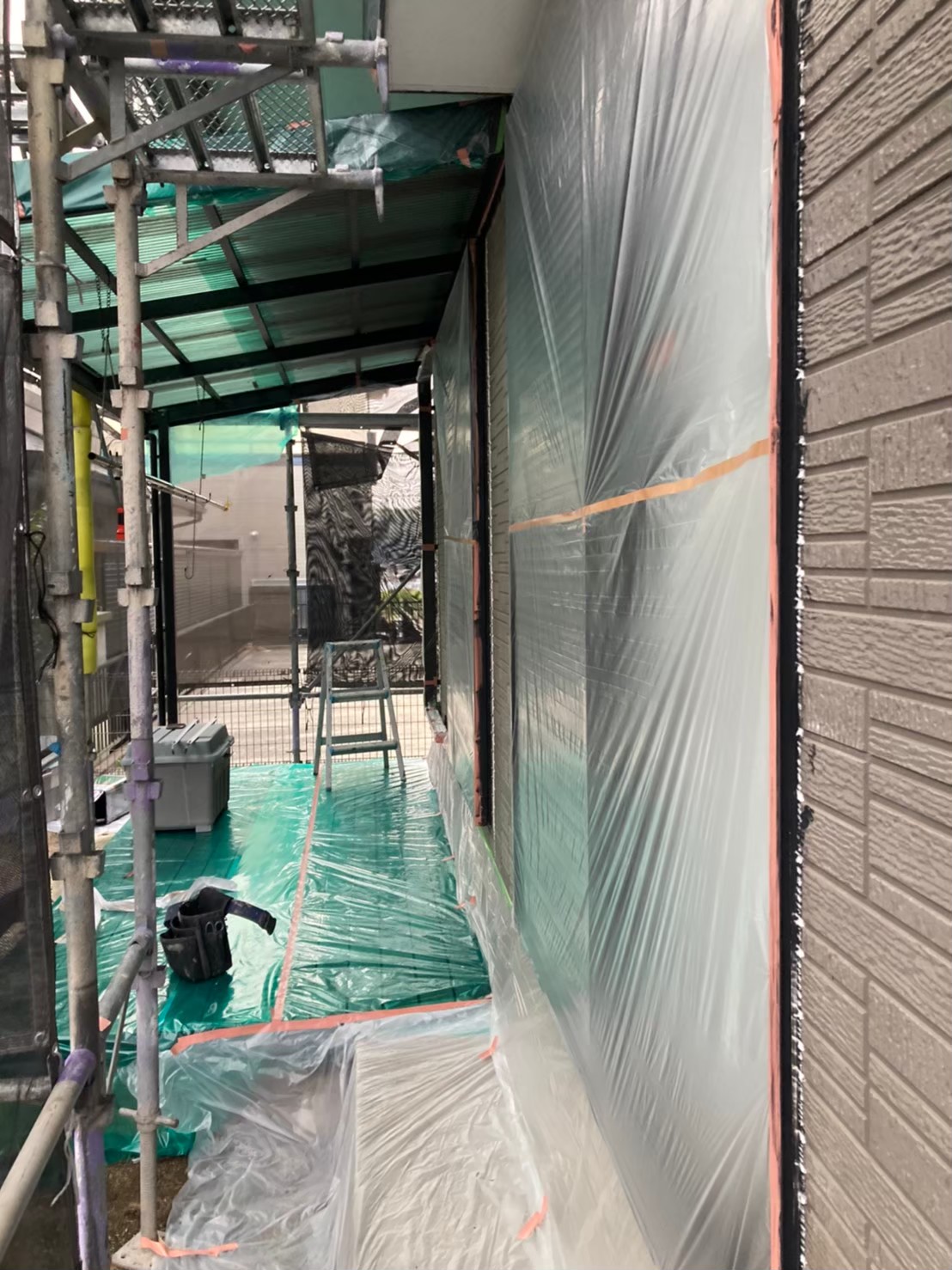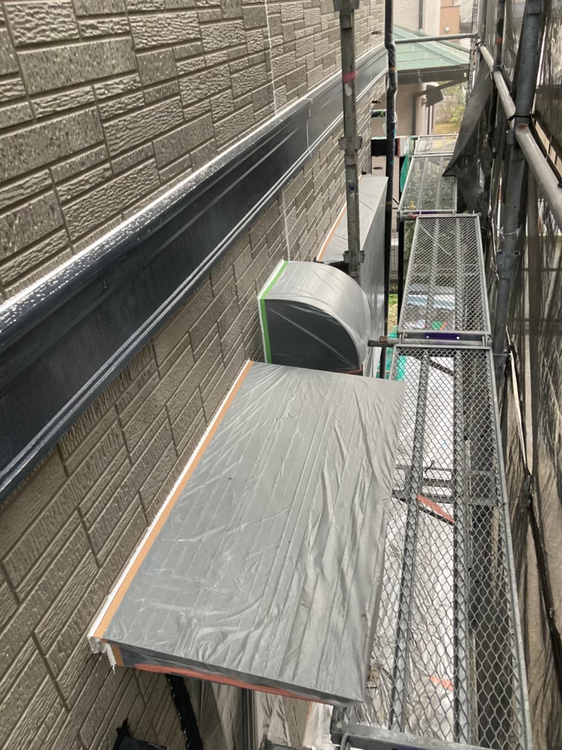 本日は各所、養生作業 屋根の下塗りの様子をお伝えいたします。