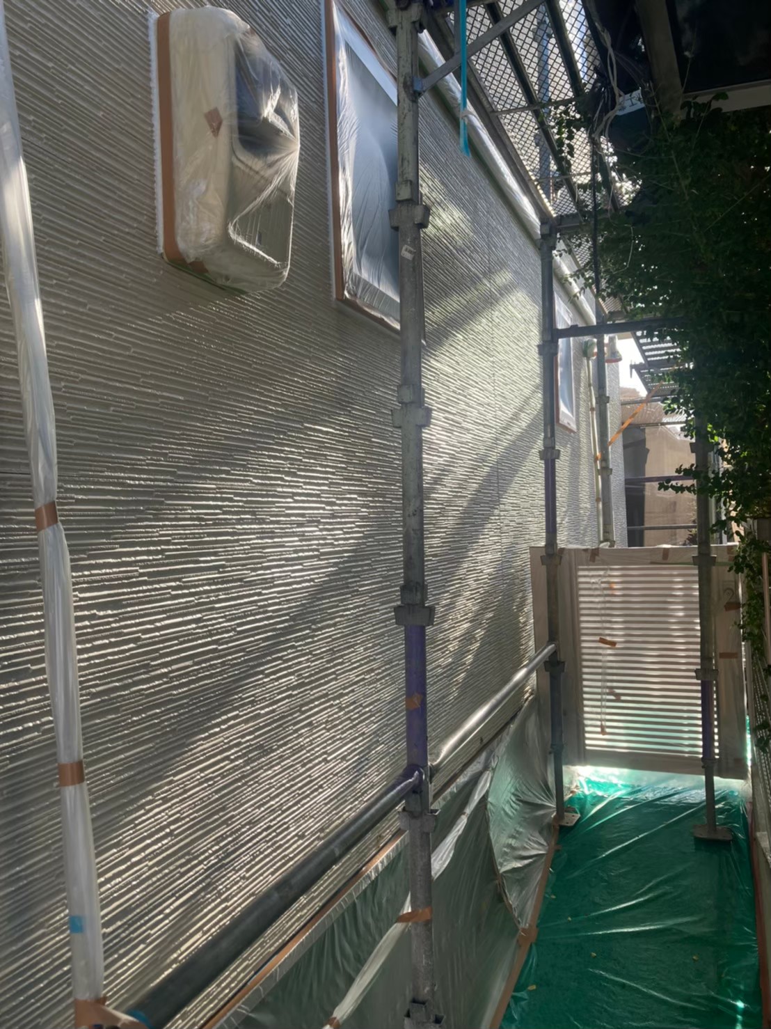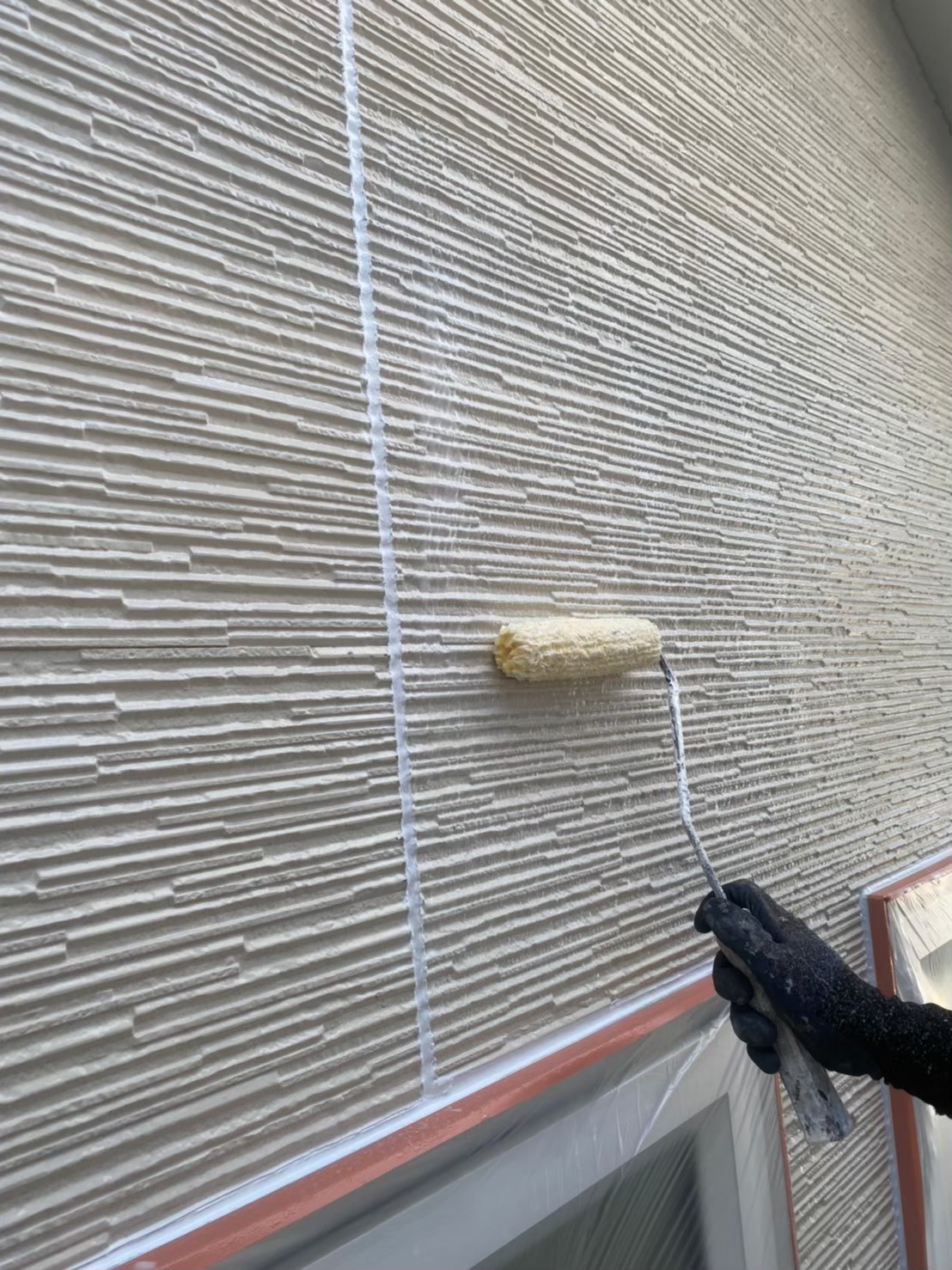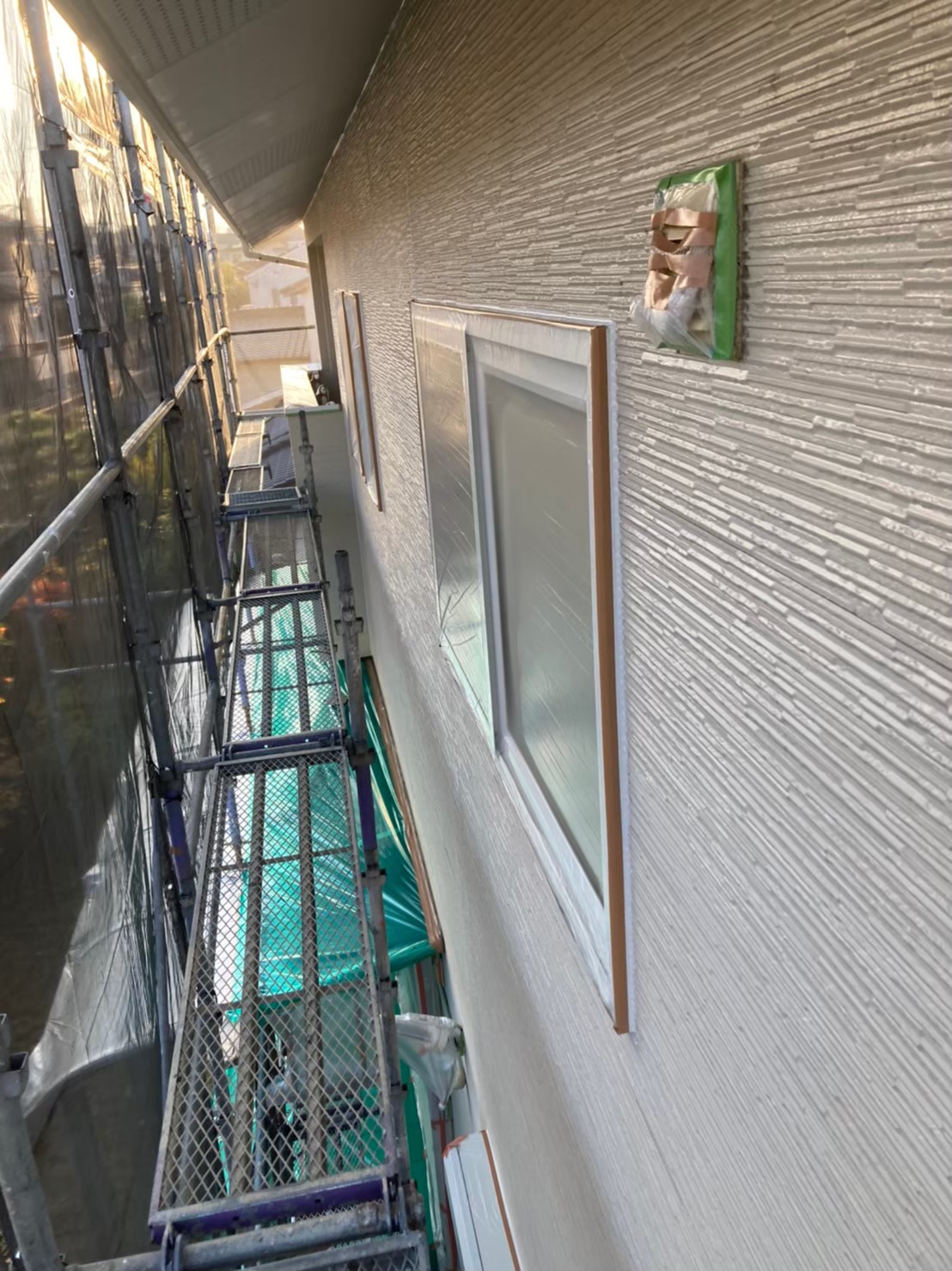 本日は養生作業、外壁の下塗りの様子をお伝えいたします。