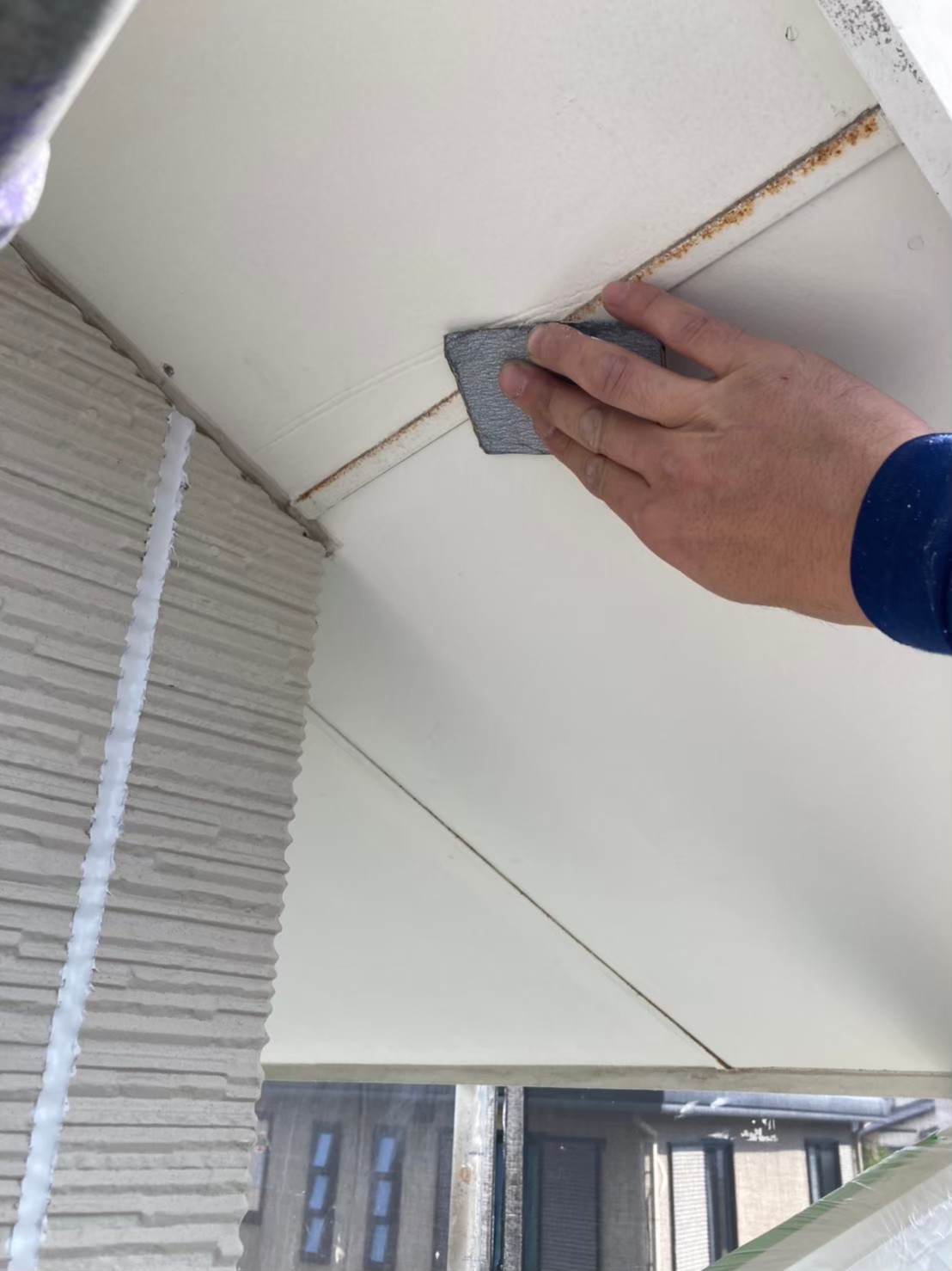 ケレン作業を行い、2液エポキシ系錆止めにて錆の発生している箇所に塗布を行っていきました。