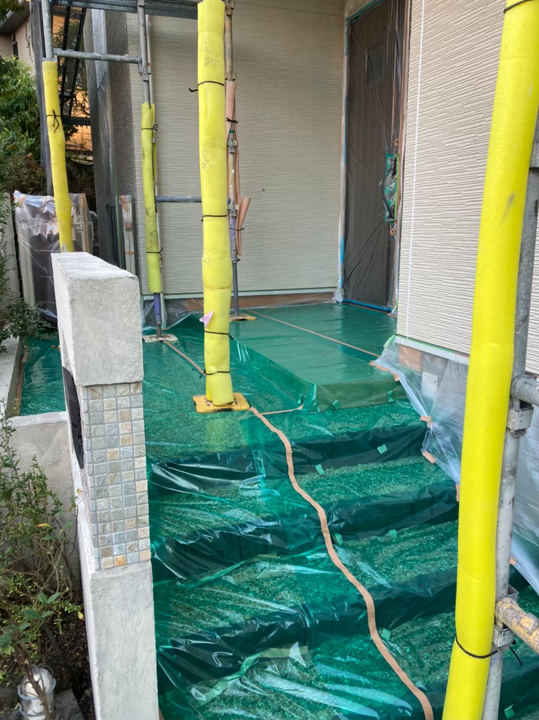 玄関など、お客様が踏み入る箇所には厚手の破れにくい素材(滑り止め加工)のビニールを使用していきます。