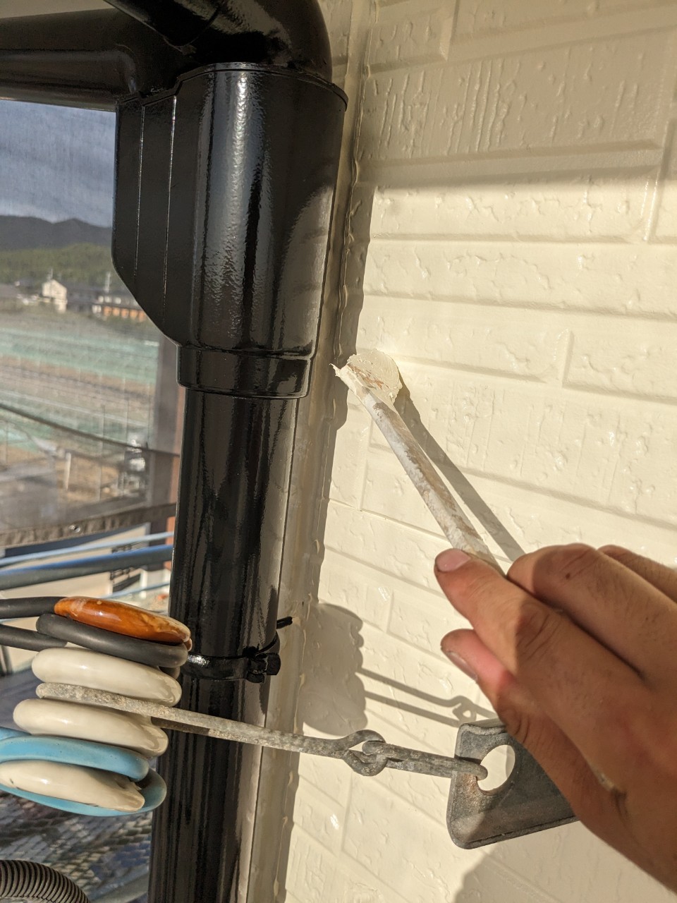外壁のタッチアップや窓サッシの掃除などを行っていきます。