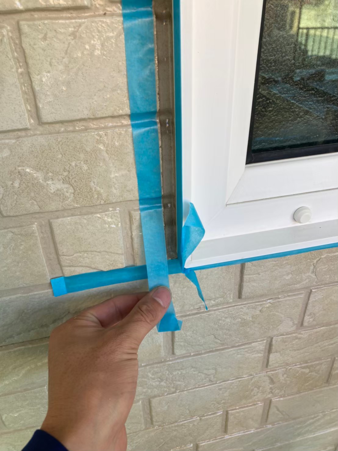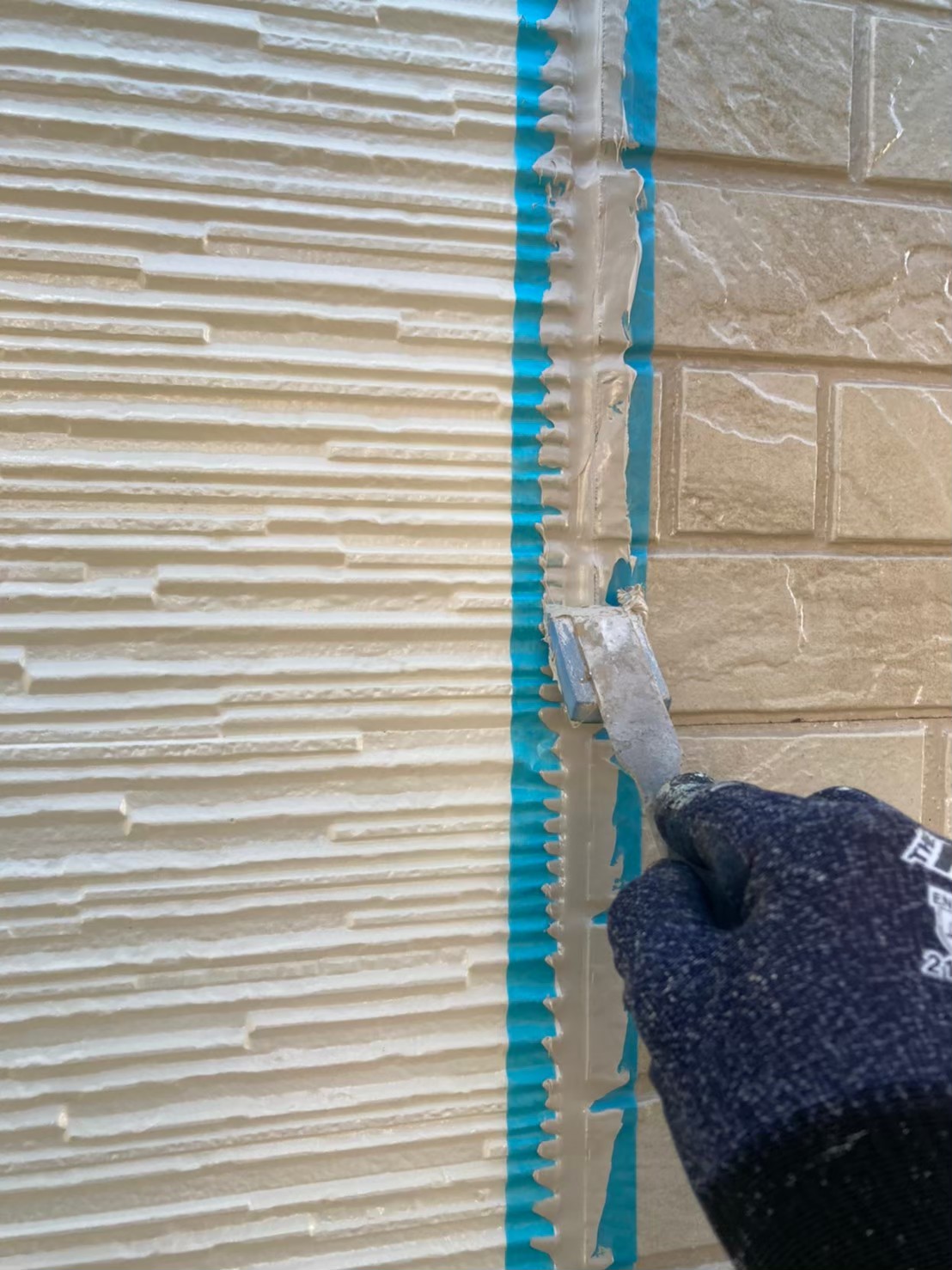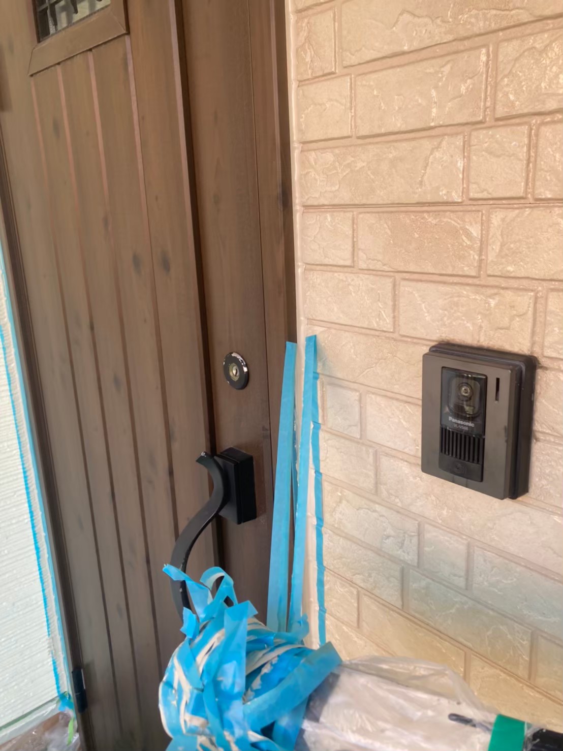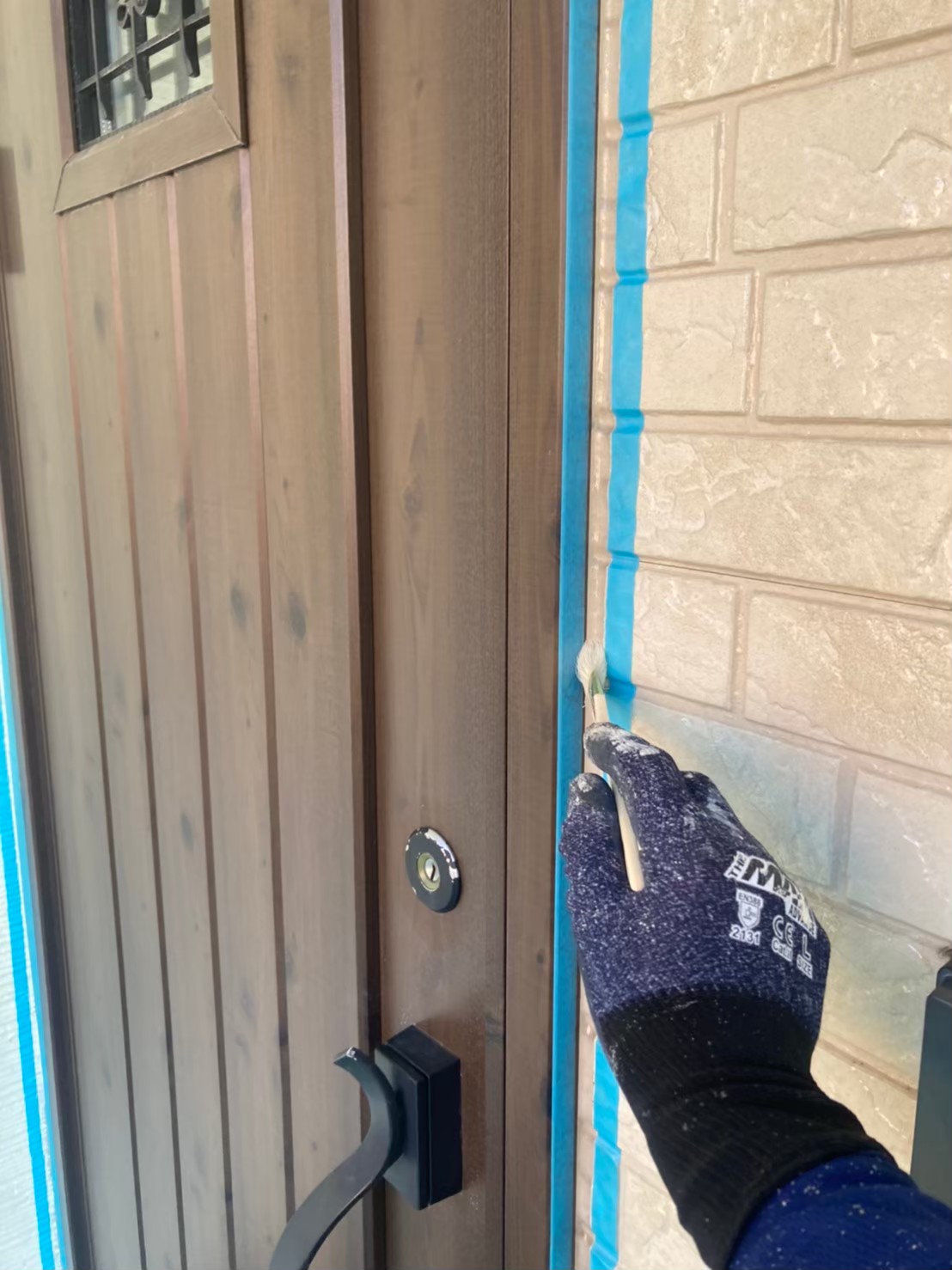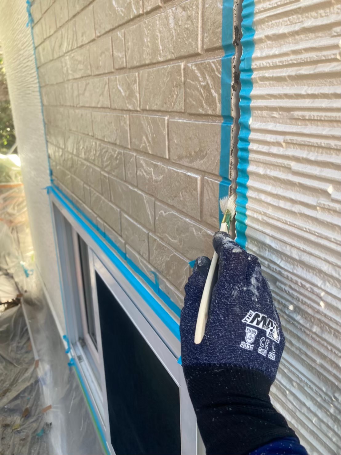 まずは、マスキングテープを使用し打ち替えに伴う養生作業を行っていきます。