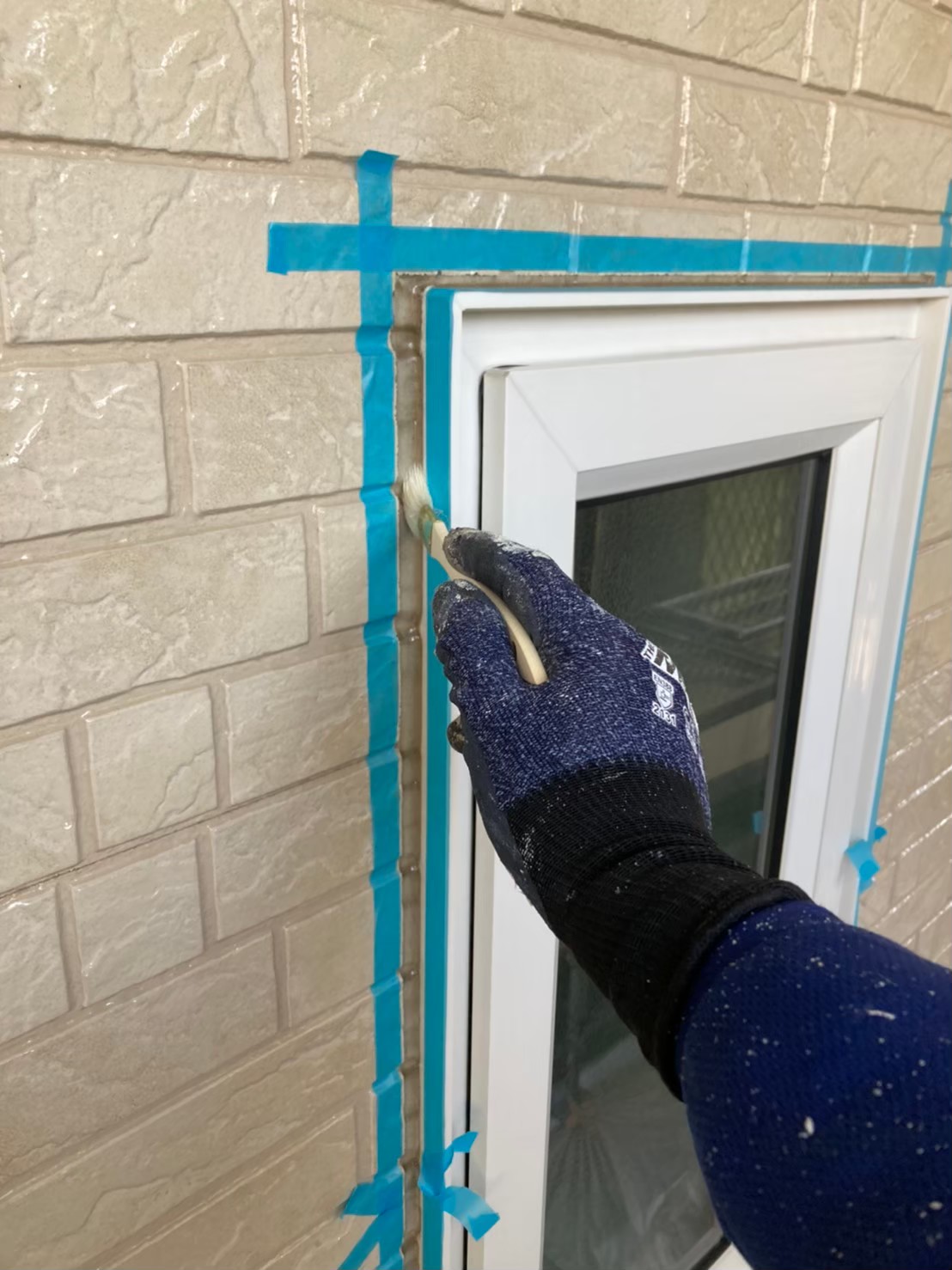 目地や窓サッシにプライマーを塗布していきます。