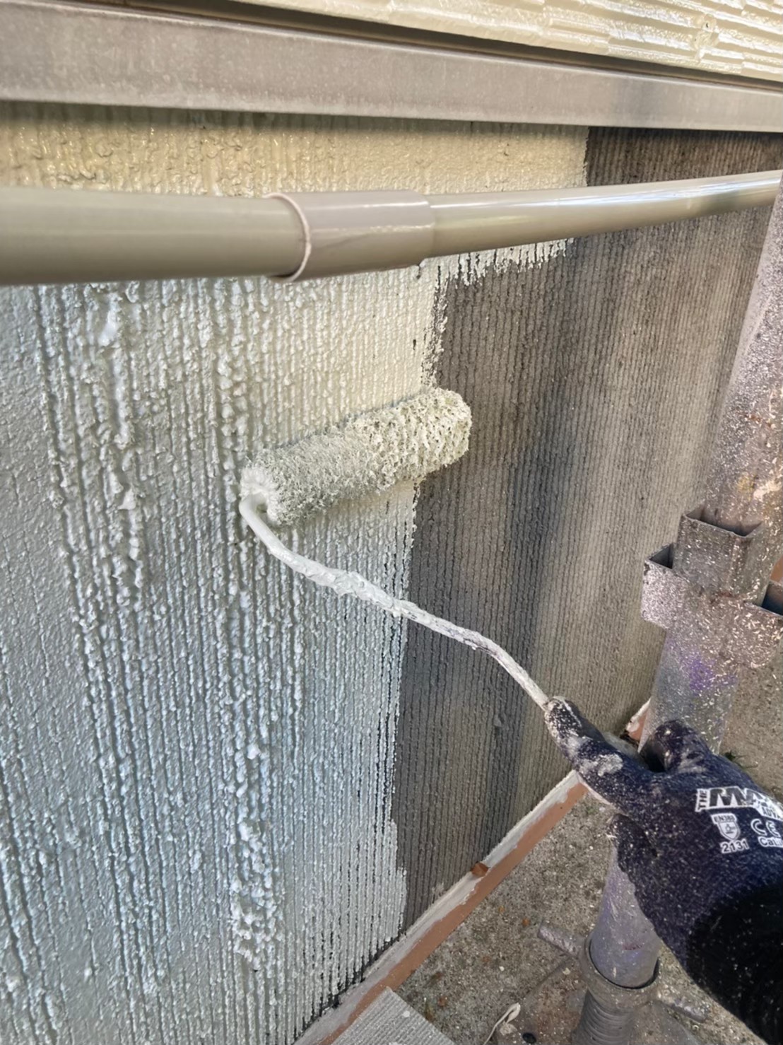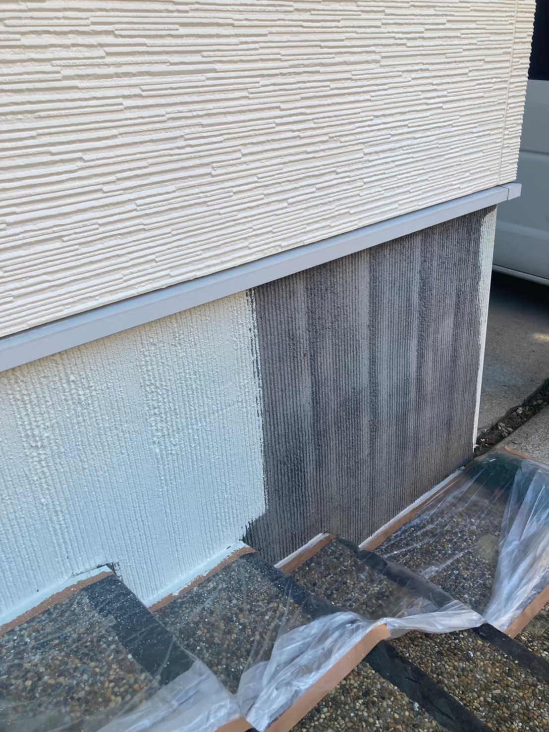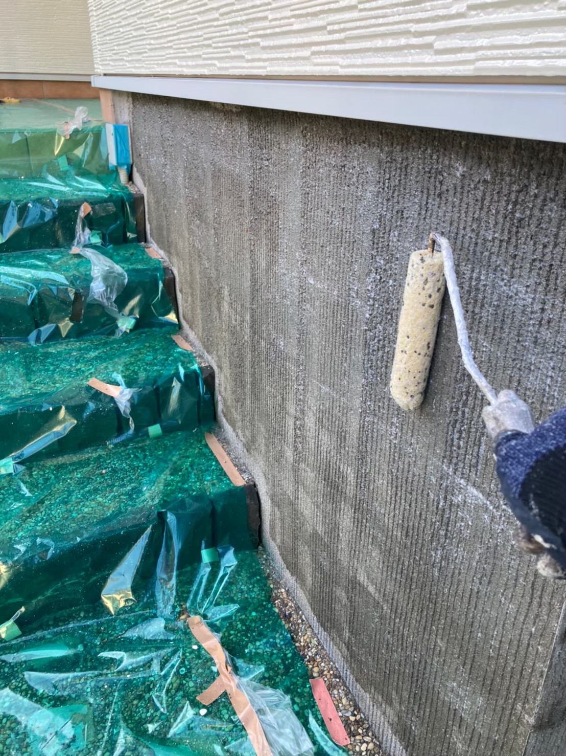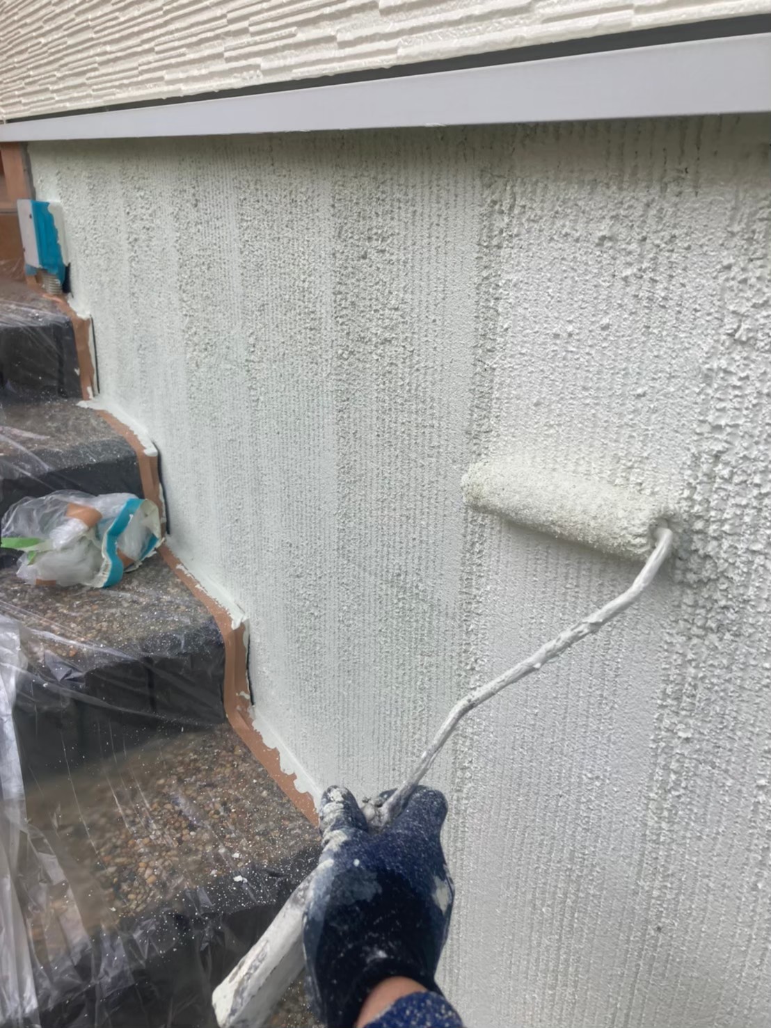 本日は塀塗装、基礎巾木塗装、シーリング打ち替え作業の様子をお伝えいたします。