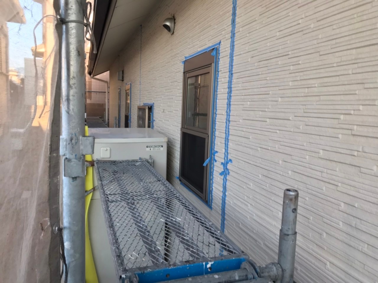 本日は外壁シーリング打ち替えに伴う養生作業の様子をお伝えいたします。
