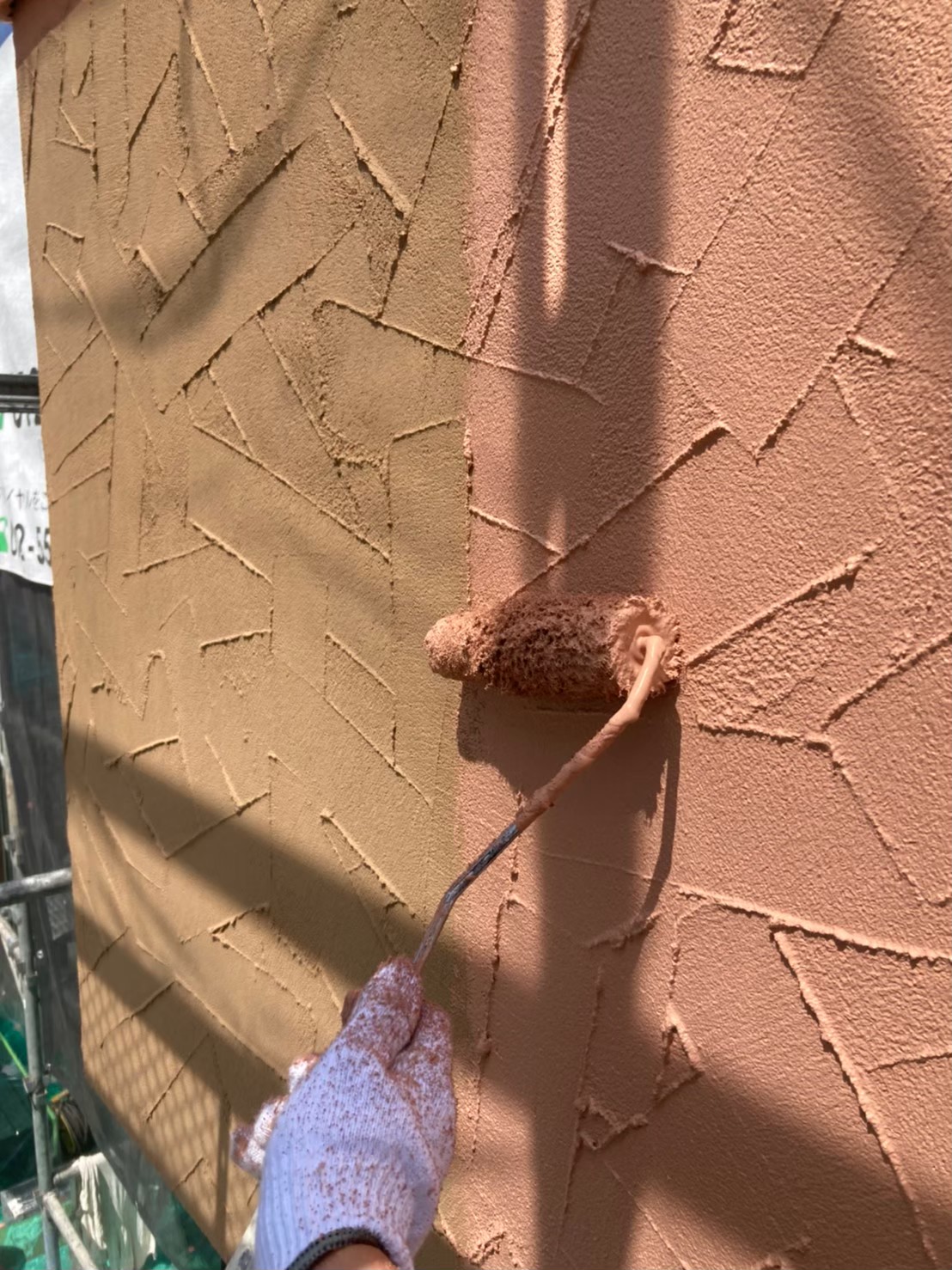 本日は外壁のベルアート箇所の中塗り、上塗りの様子をお伝えいたします。