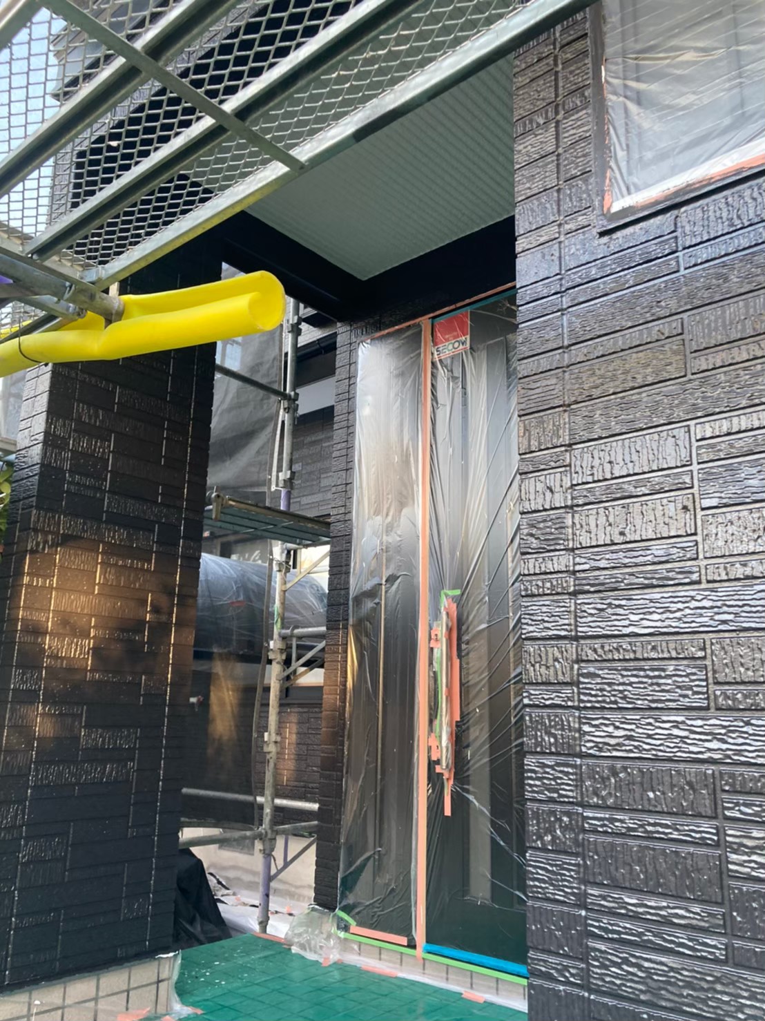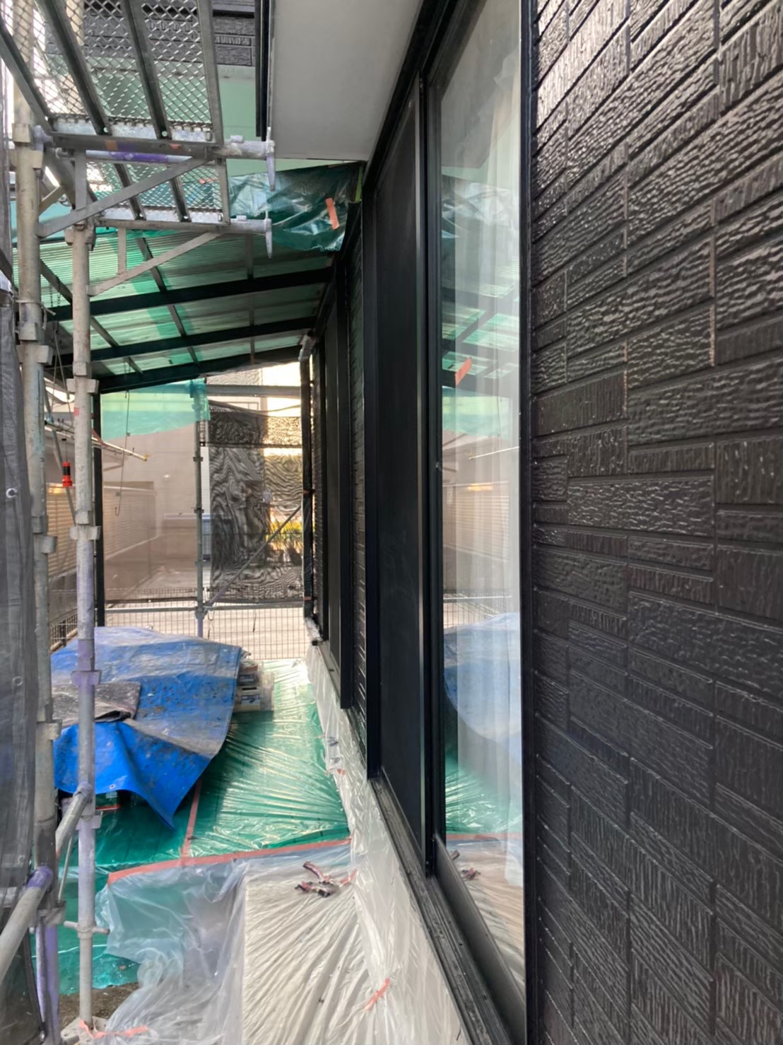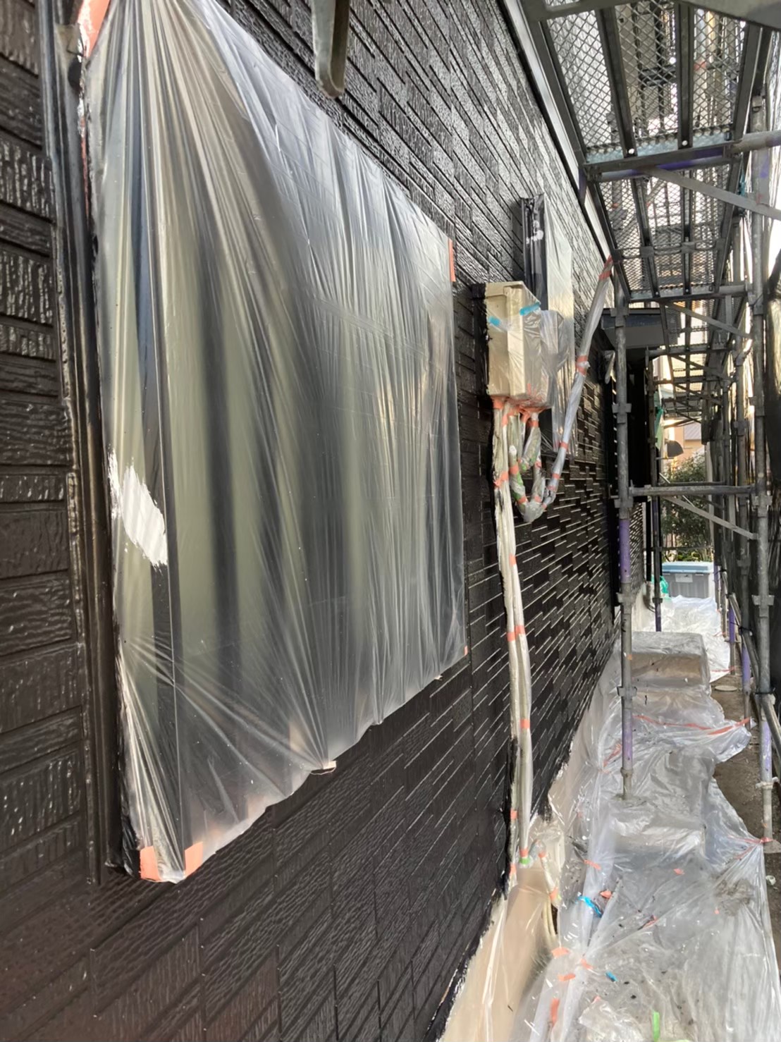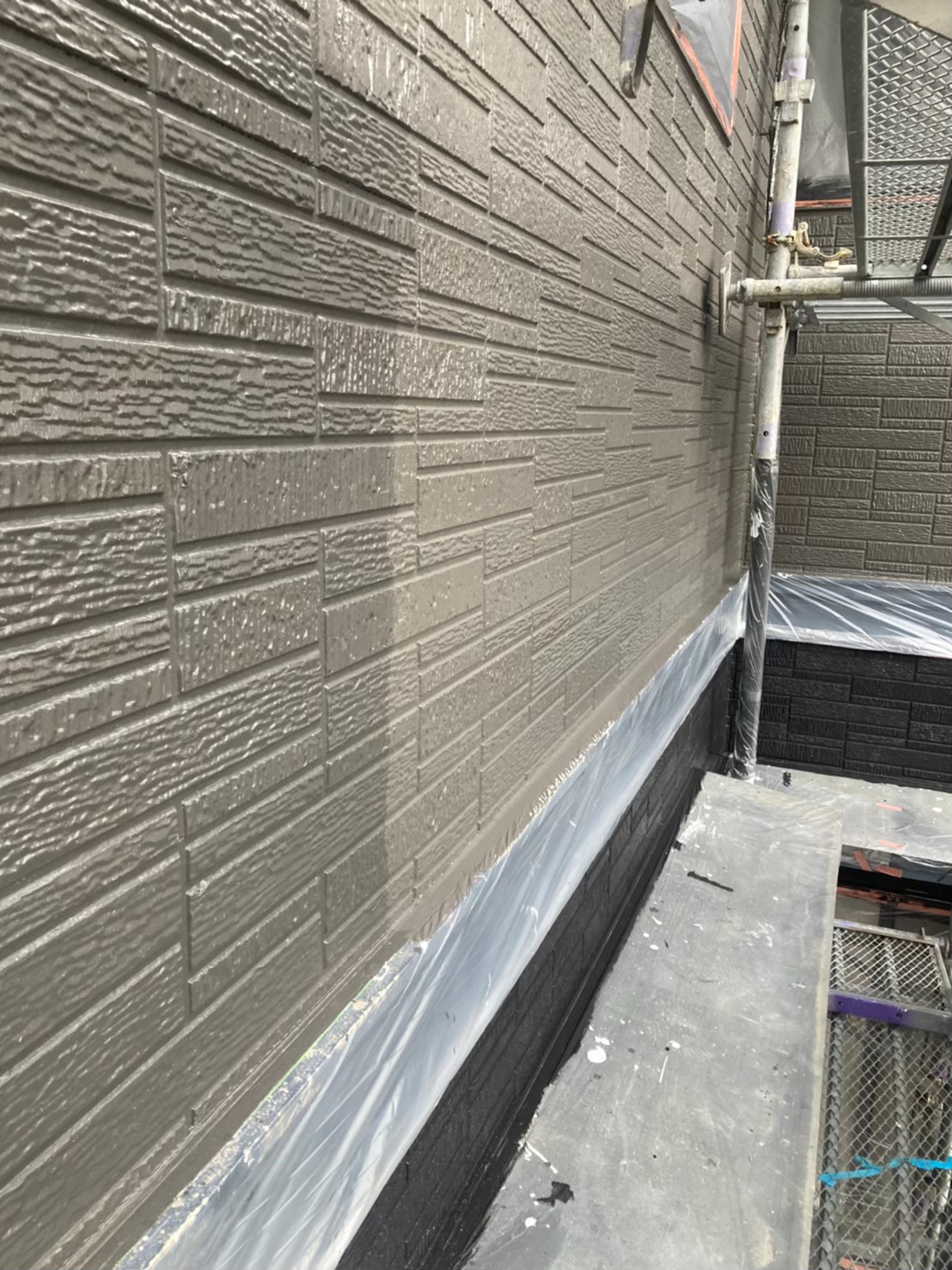 しっかりと乾燥させた後に、外壁の上塗りを行っていきます。