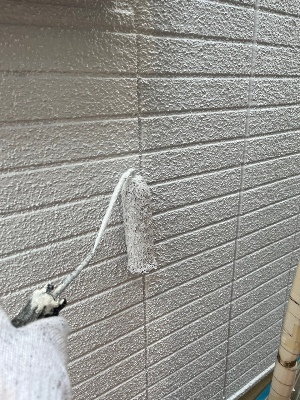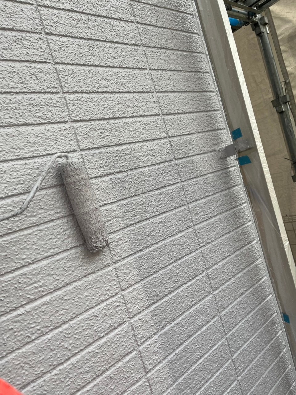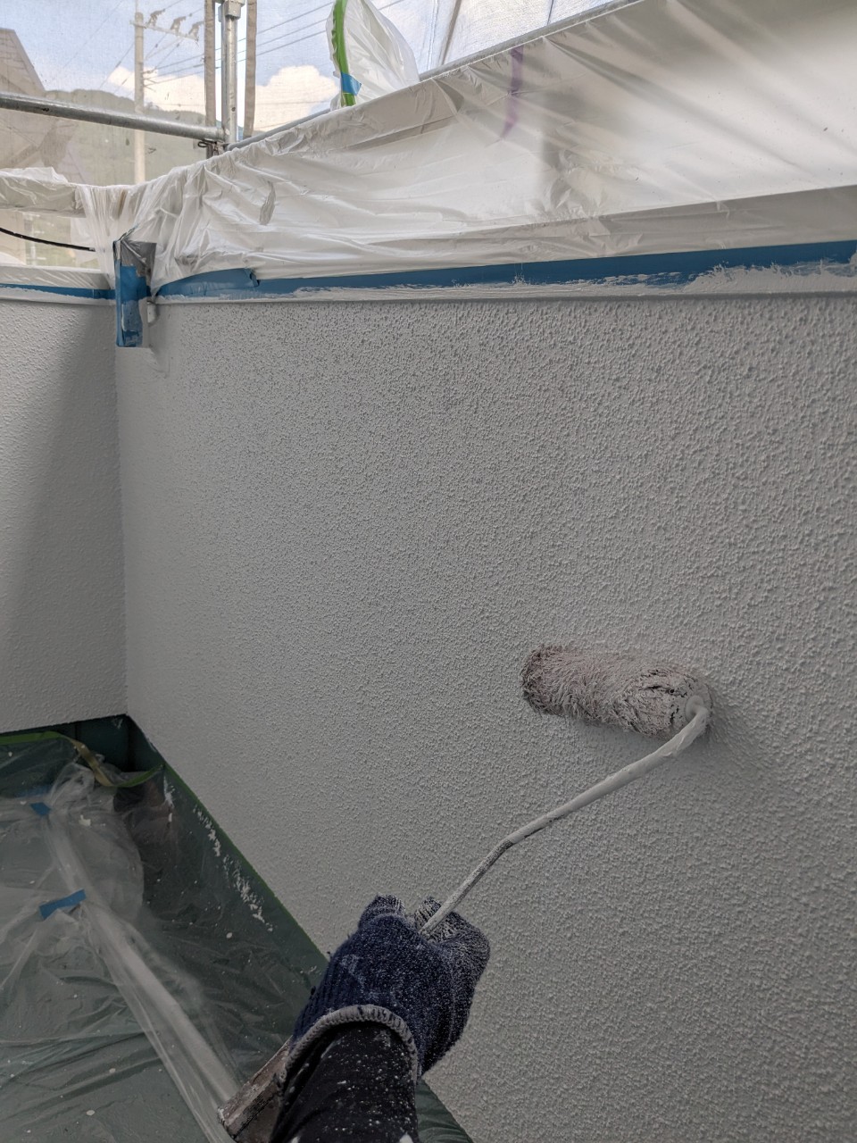 本日は外壁の上塗り、タスペーサー処理の様子をお伝えいたします。