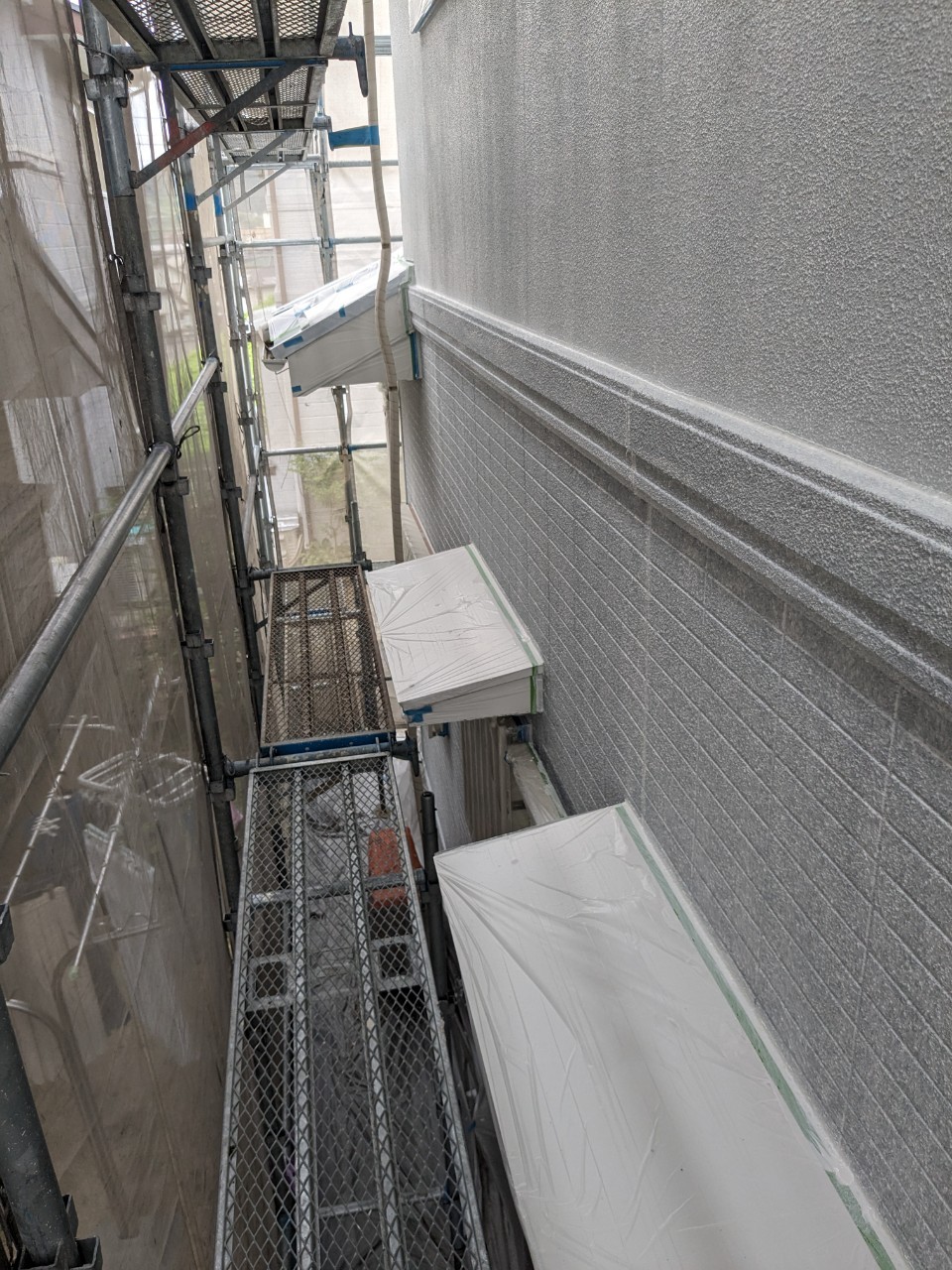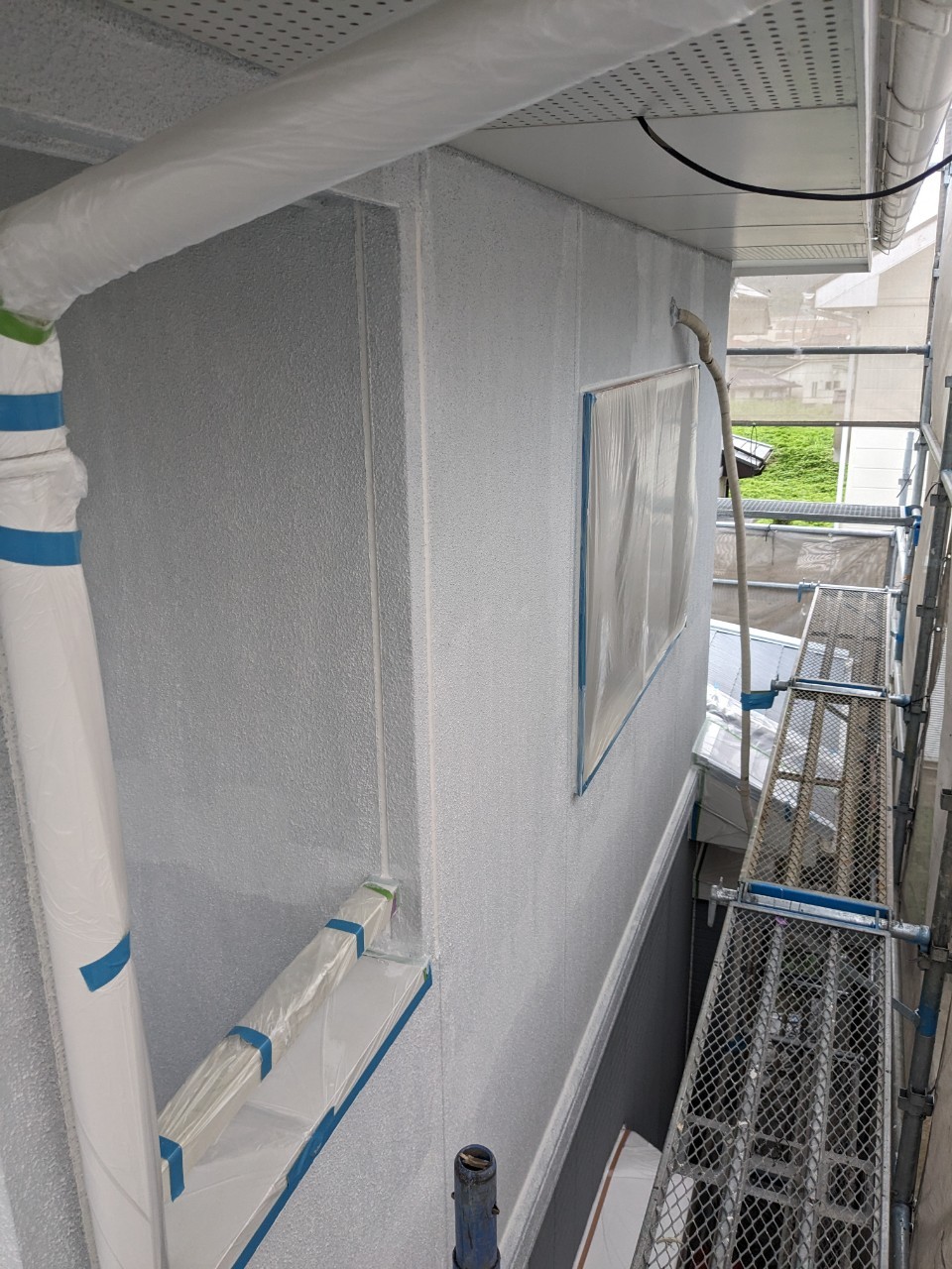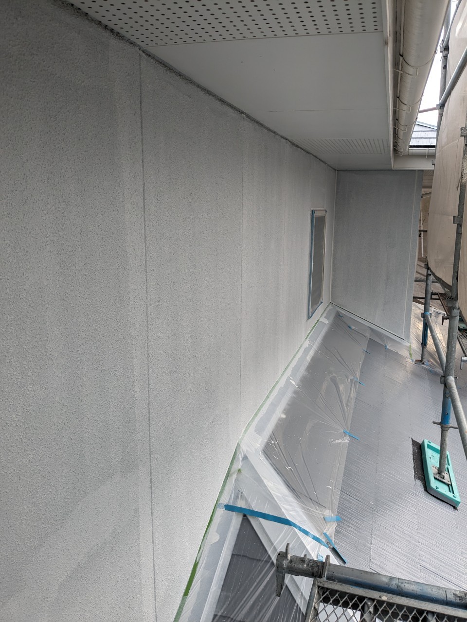 明日は軒天井塗装、外壁の中塗りを行います。