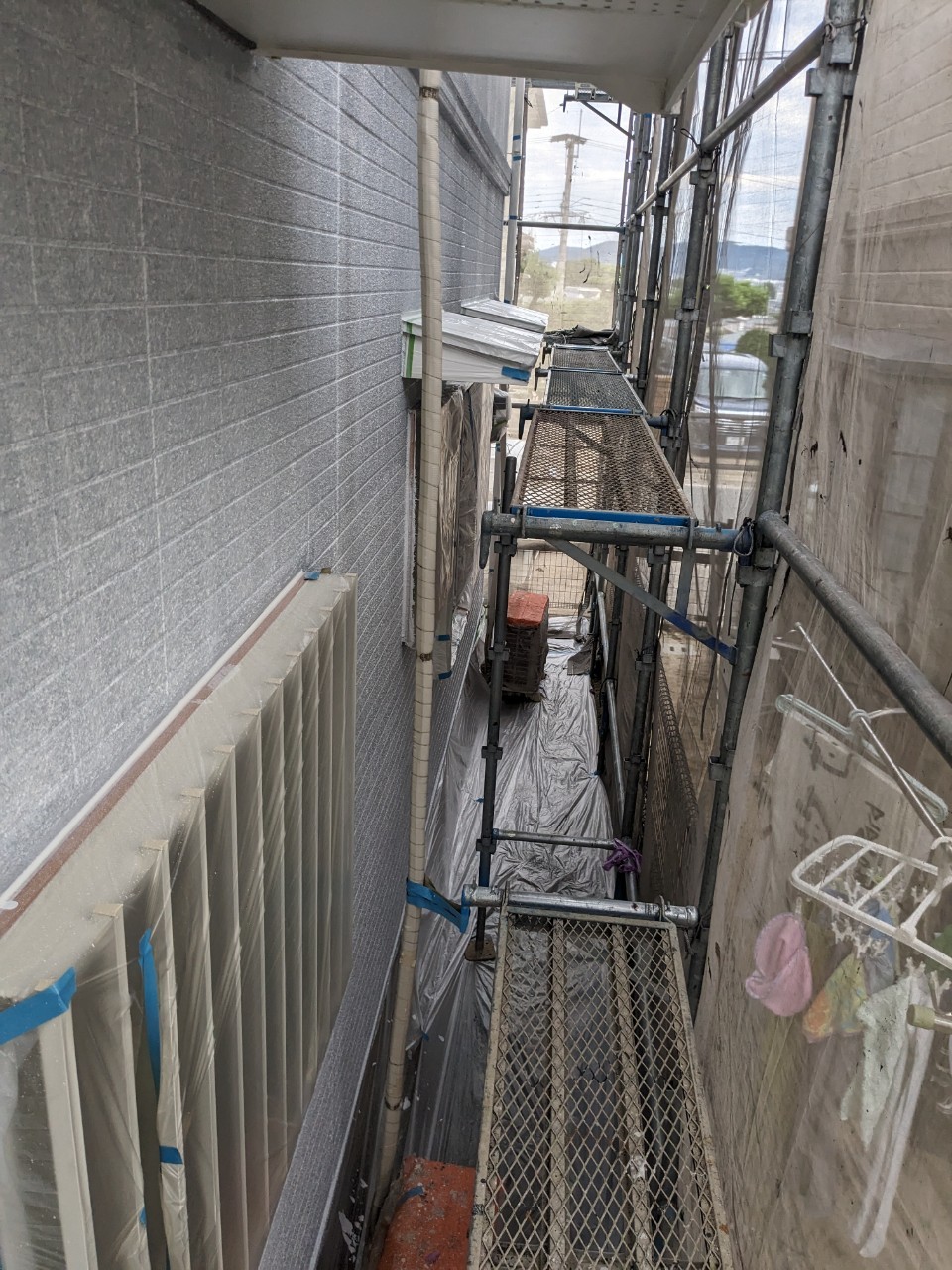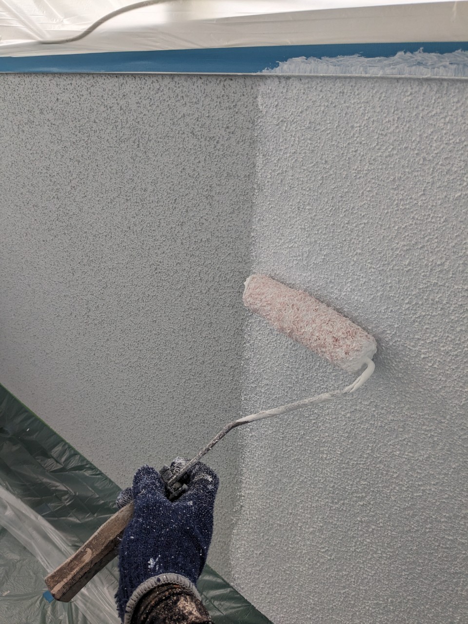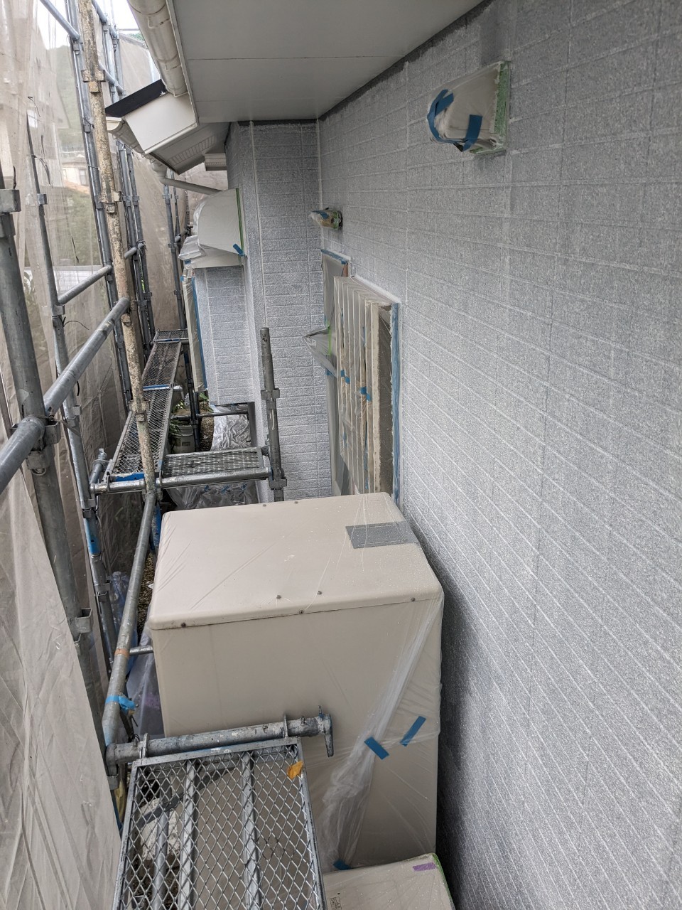 明日は軒天井塗装、外壁の中塗りを行います。