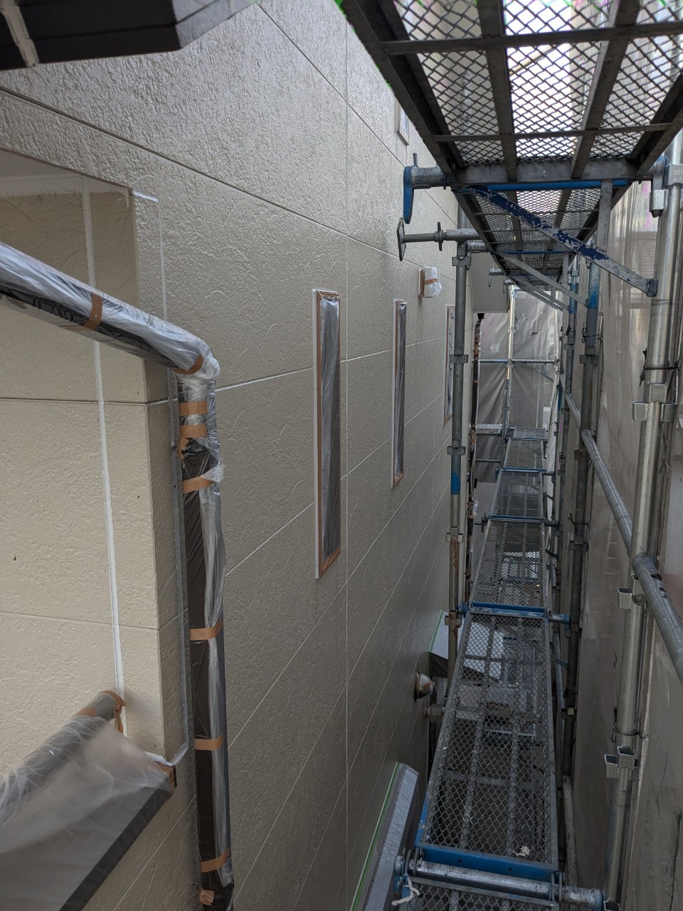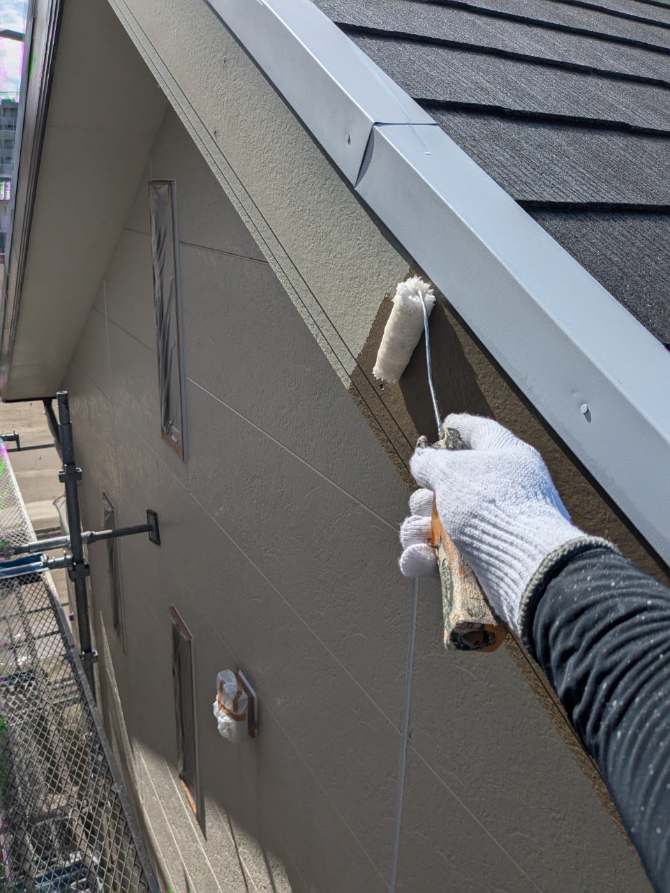 本日は外壁の下塗り、屋根の下塗り2回目の様子をお伝えいたします。