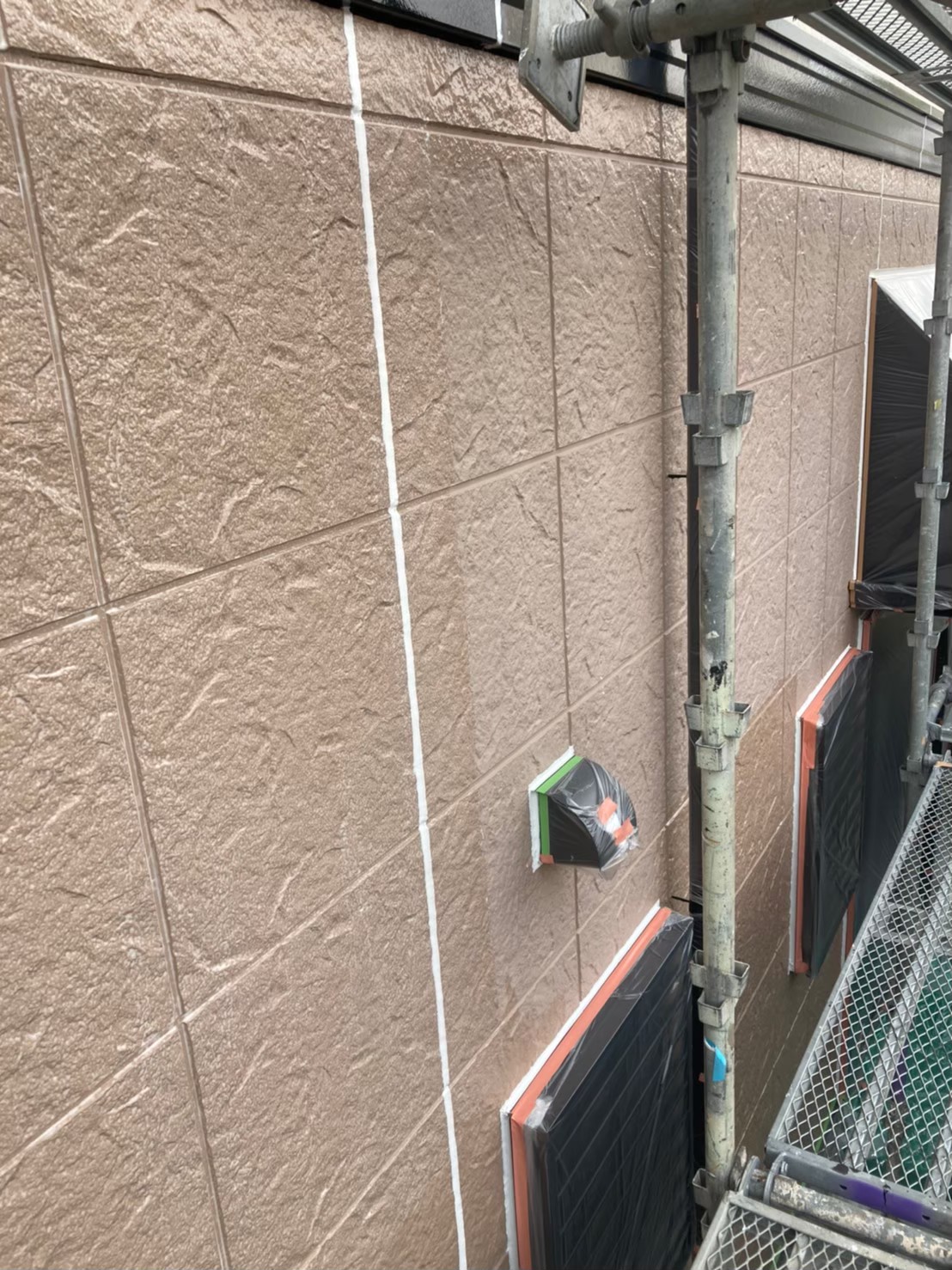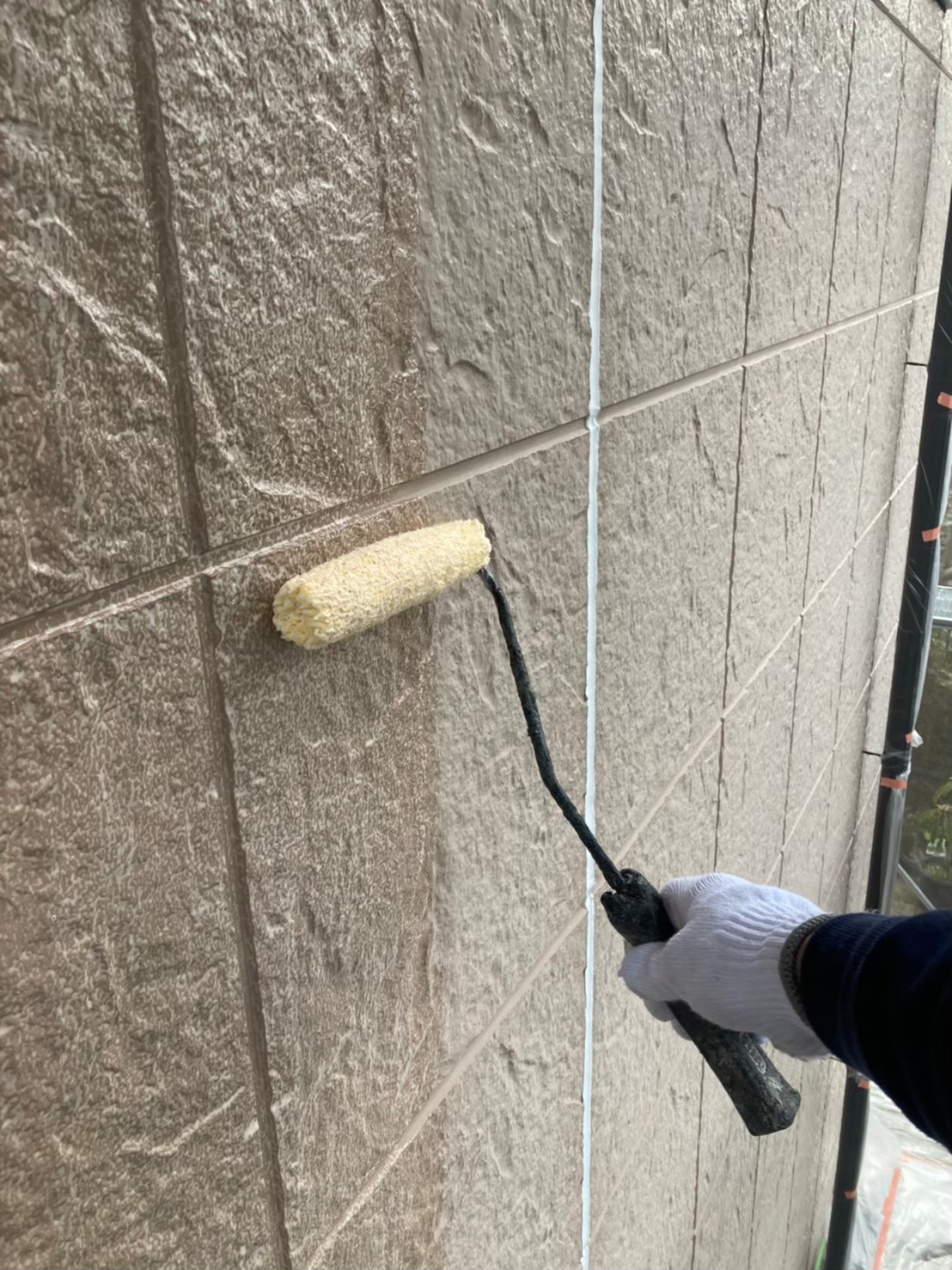 外壁と塗料の接着剤的な役割りを果たし、今回はクリヤー色での下塗りを行いましたので、乾燥すると透明色になります。