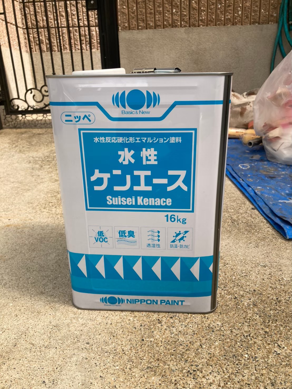日本ペイント 水性ケンエースにて軒天井の塗装を行って行きます。