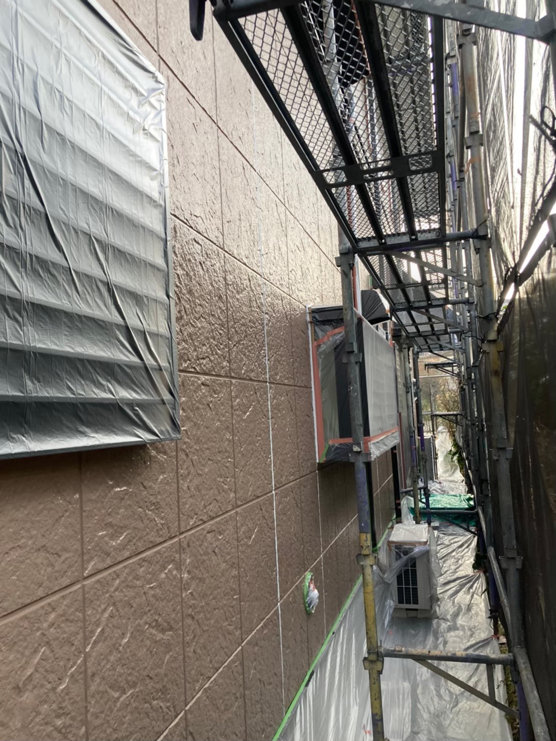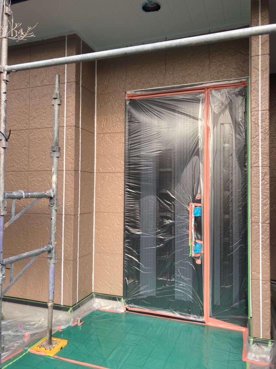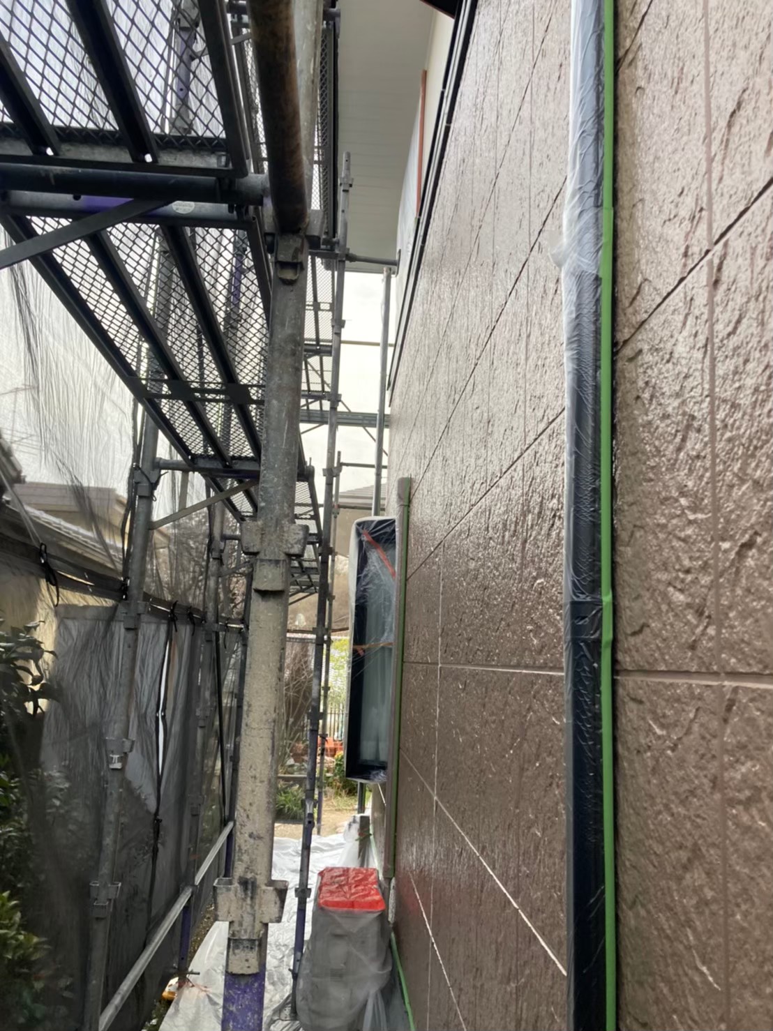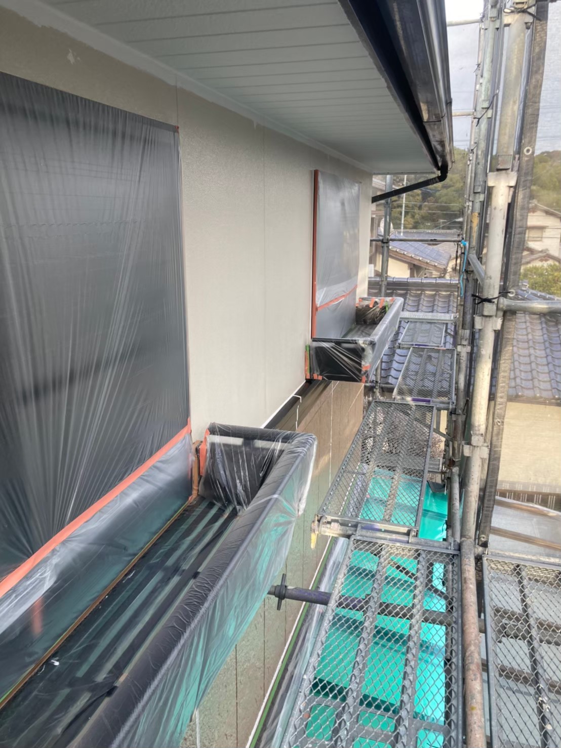 本日は外壁の下塗り、軒天井塗装の様子をお伝えいたします。