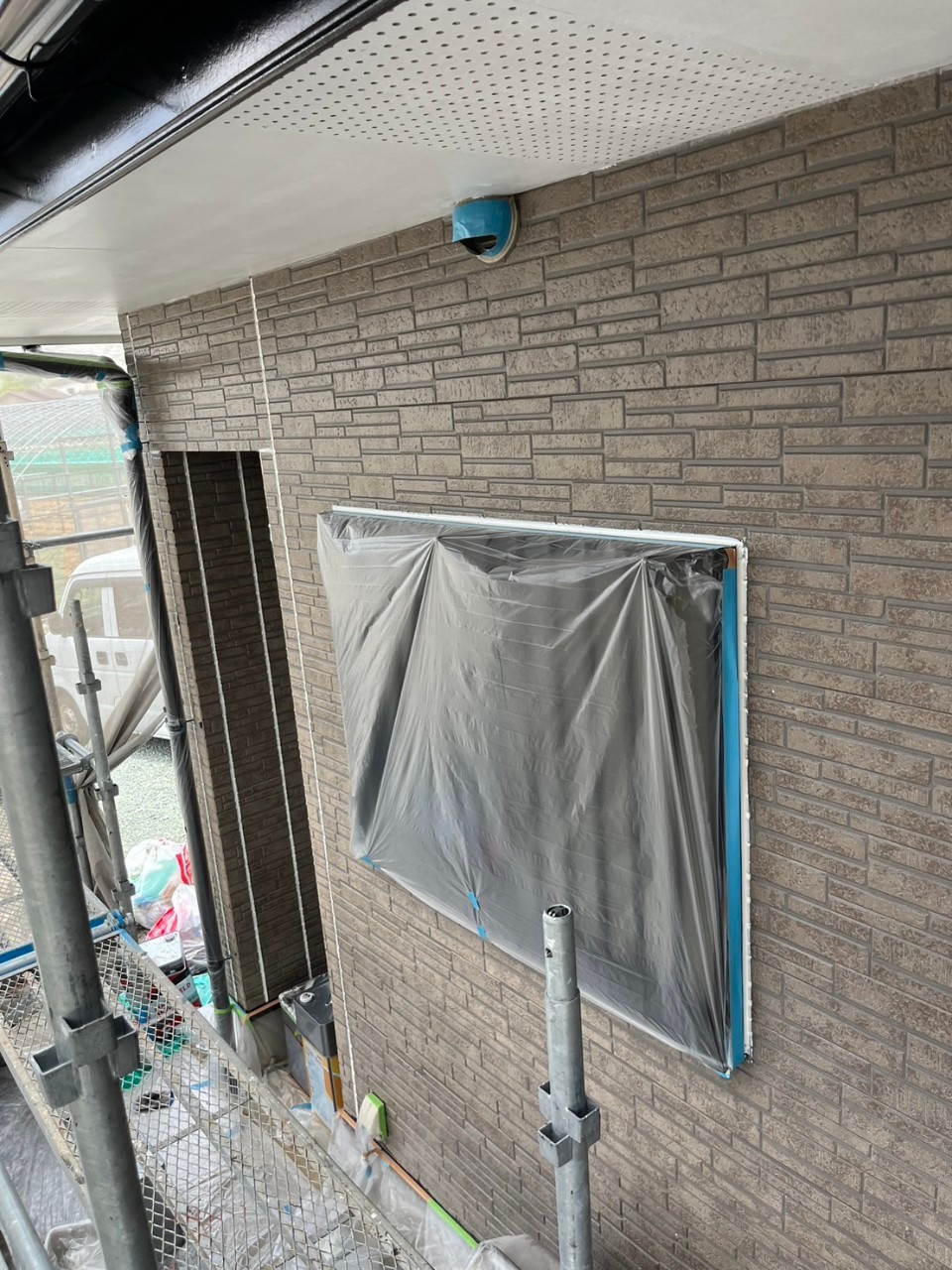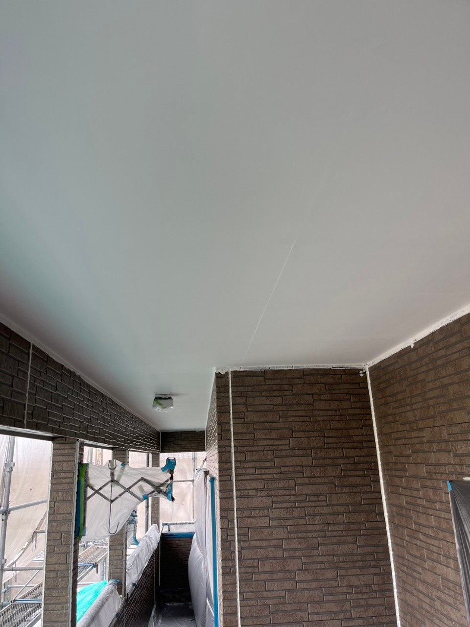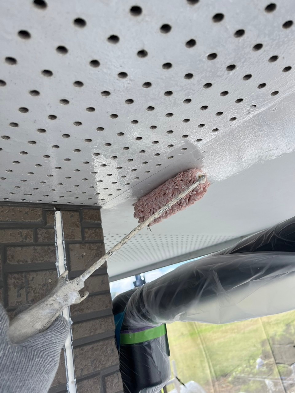 本日は外壁の下塗り、軒天井塗装の様子をお伝えいたします。