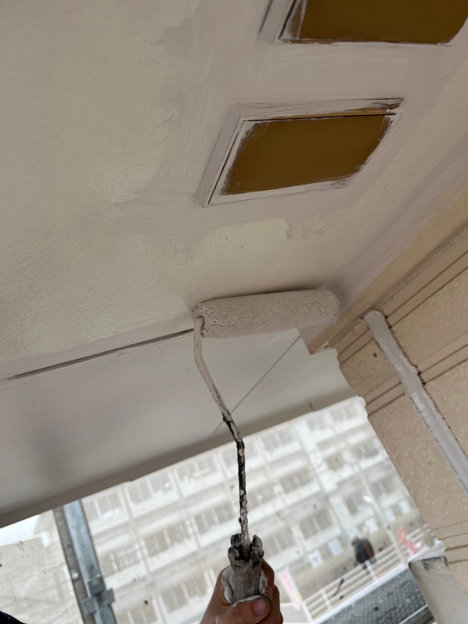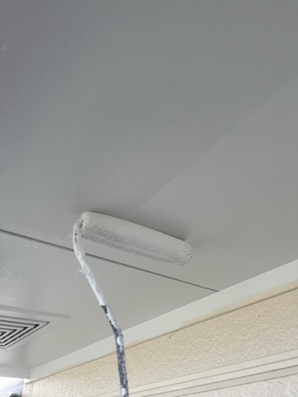 日本ペイント 水性ケンエースにて軒天井の塗装を行って行きます。